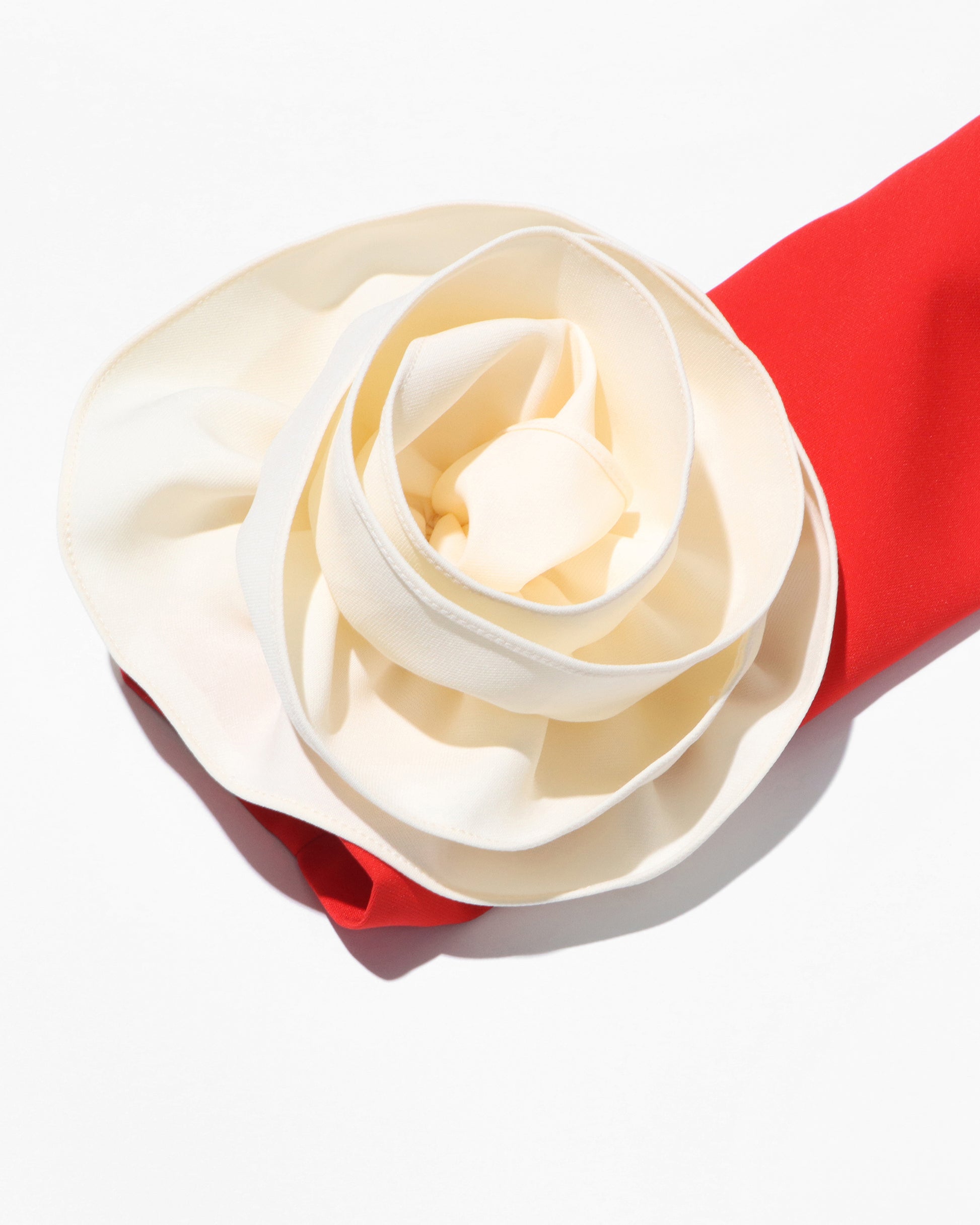 Red Midi Dress with Cream Bow Cuffs