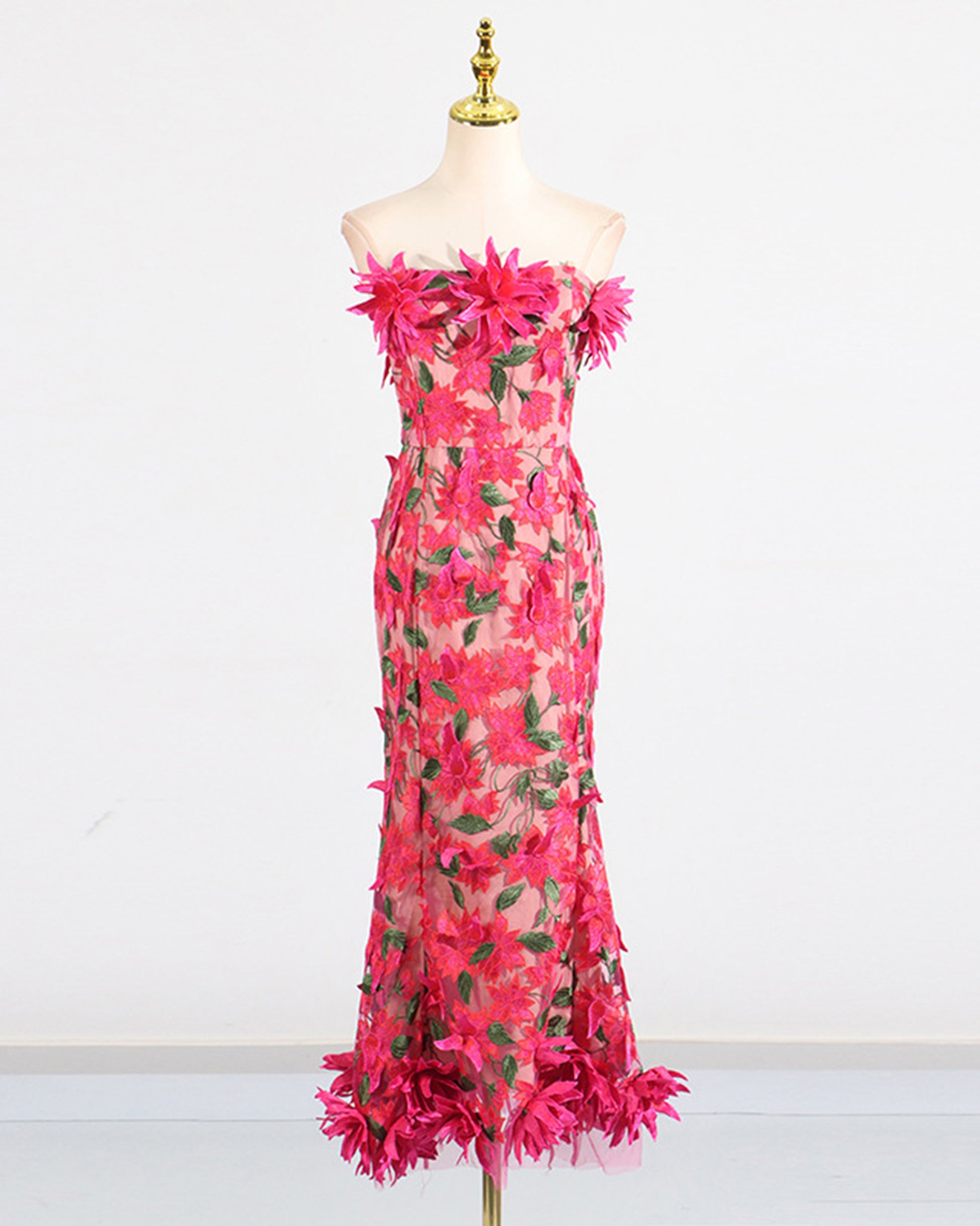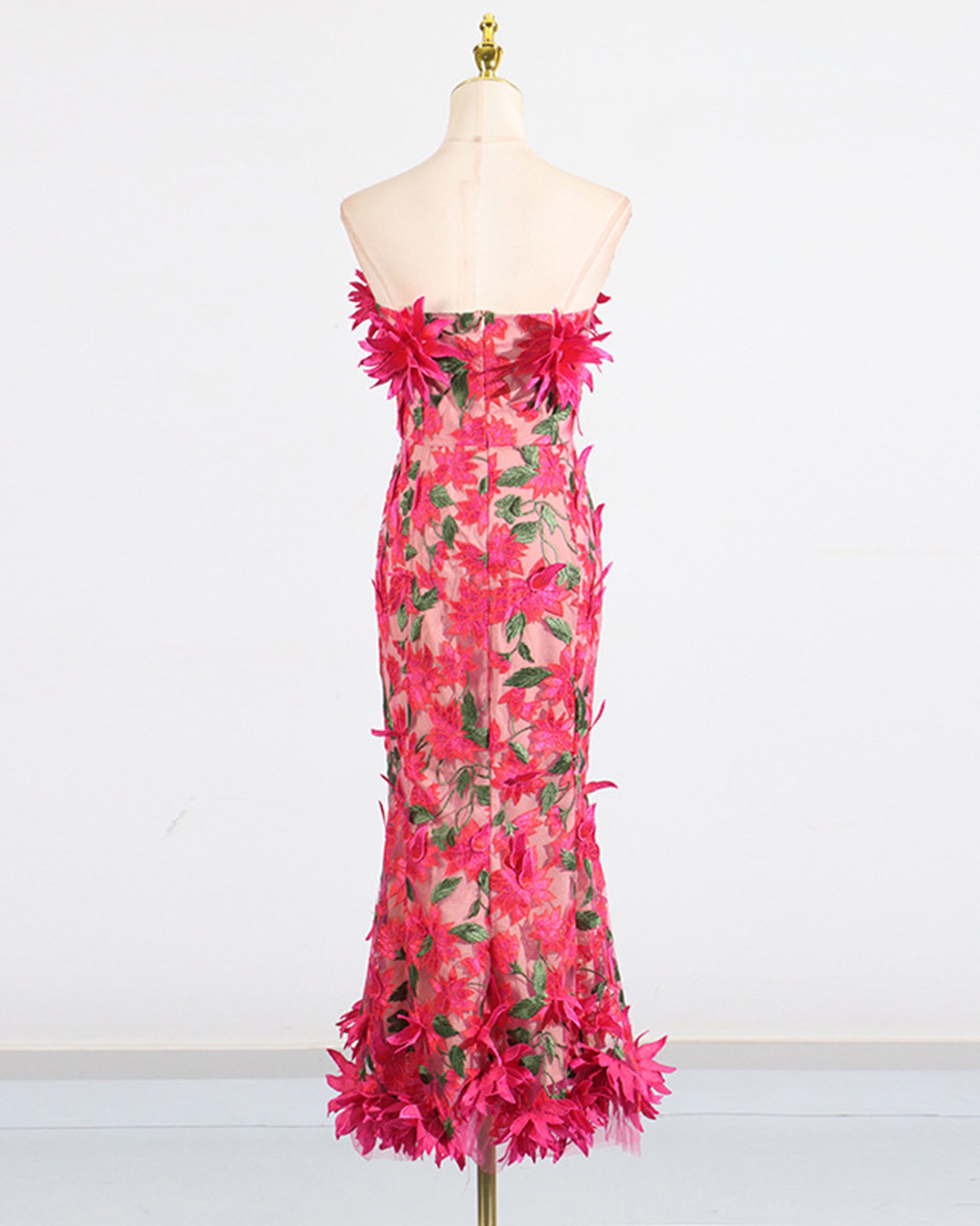 Rose 3D Floral Strapless Gown