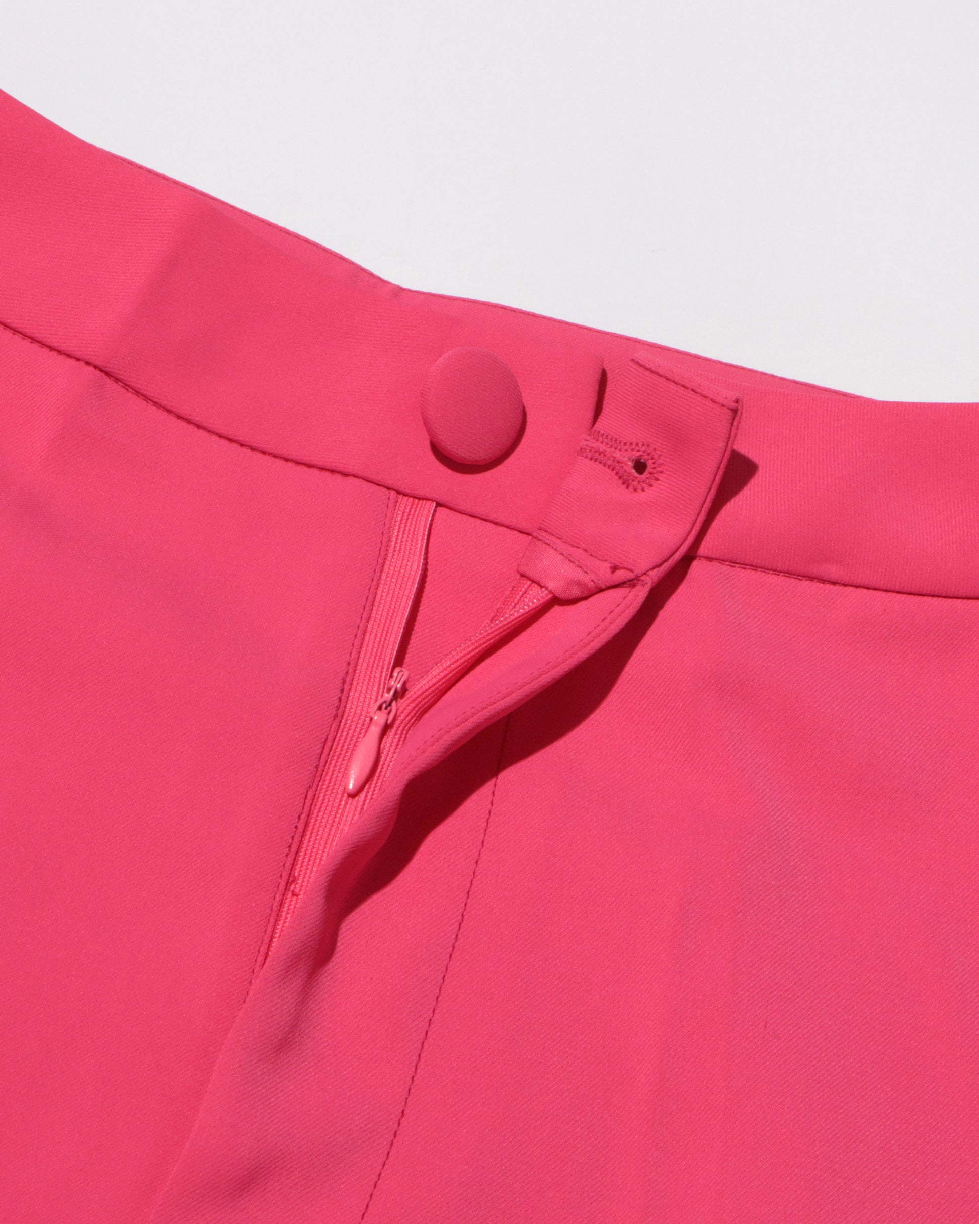 - Vibrant, retro-inspired silhouette, blending structured tailoring with a playful flare.