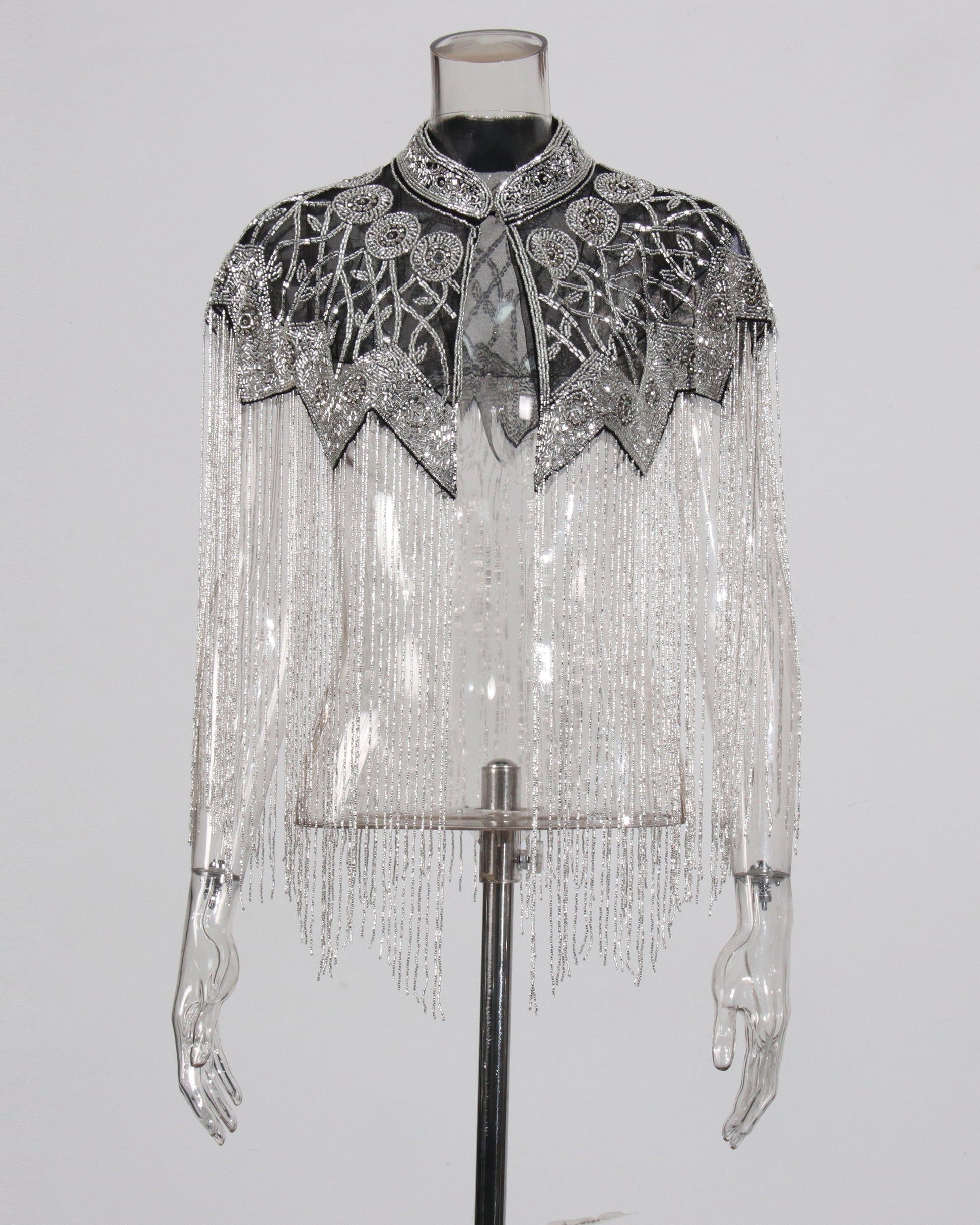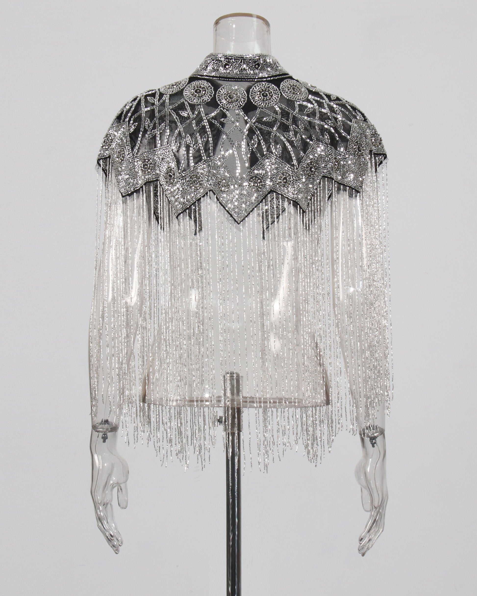 Silvery Embroidered Fringe Capelet Jacket