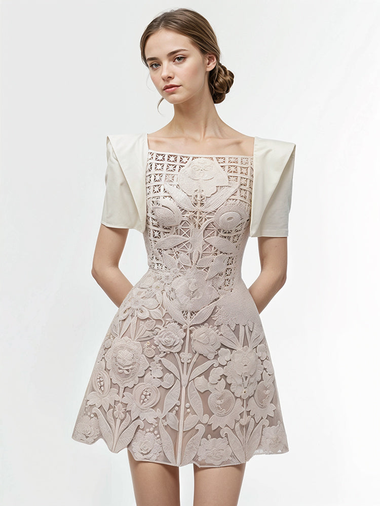 Introducing our Solid Hollow Out Mini Dresses, the perfect combination of elegance and style. Made with exquisite craftsmanship, this dress features a delicate and intricate design, sure to make you stand out in any event. Embrace your inner sophistication and grace with this luxurious dress.