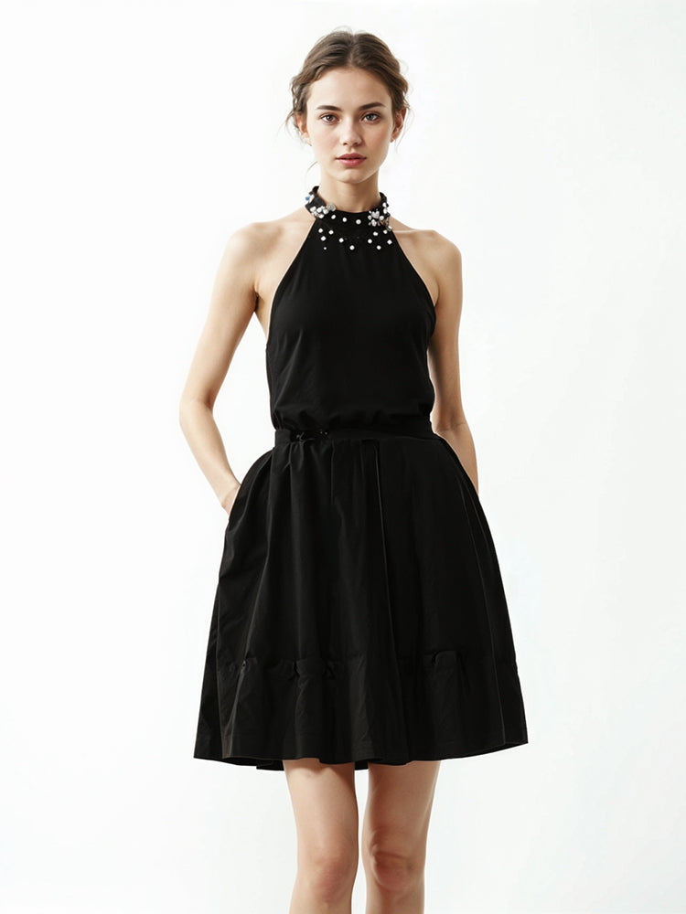Elevate your style with our Solid Patchwork Bowknot Chic Dress. The mini length, velvet fabric, and diamond embellishments exude luxury. The cinched waist, halter neckline, and open back provide a flattering silhouette. A must-have for any upscale event.