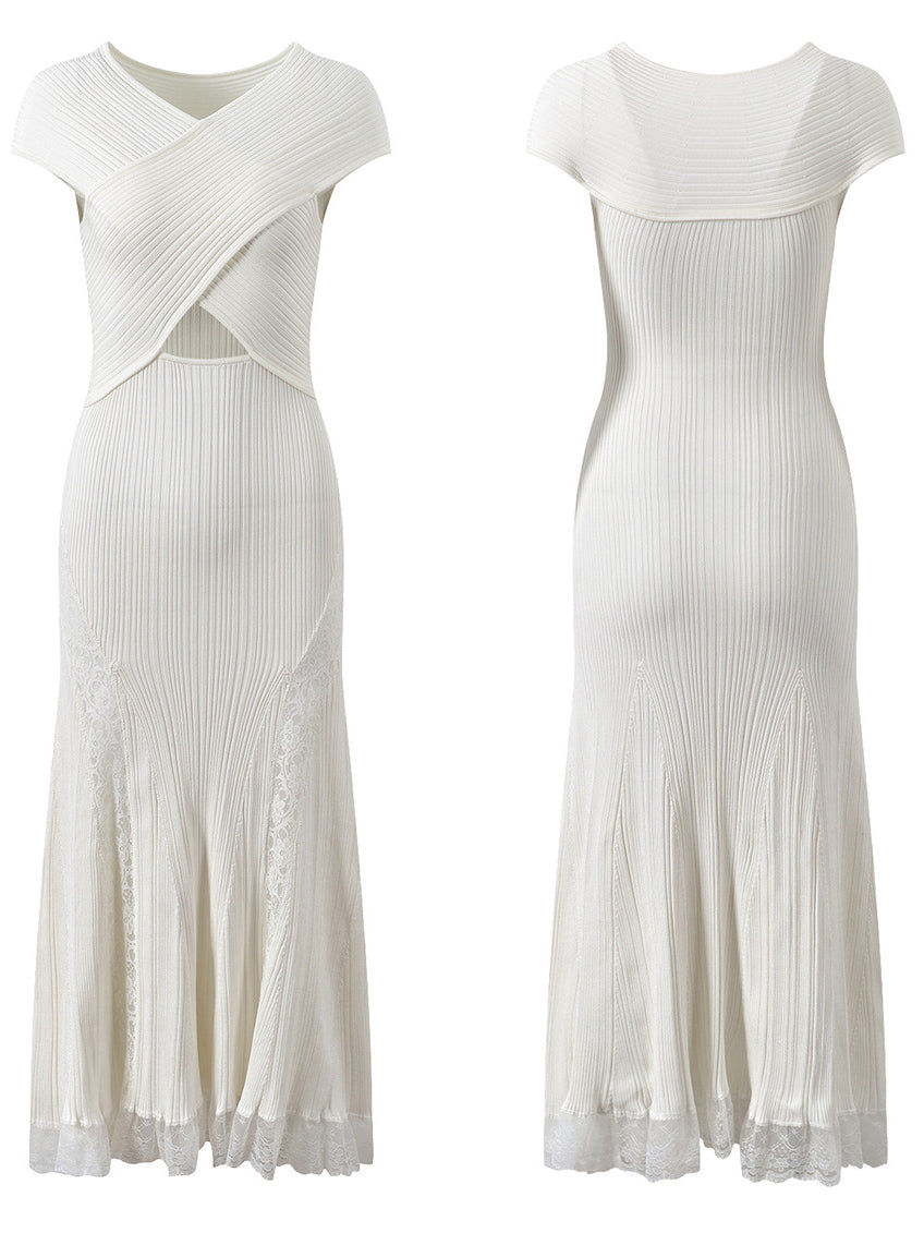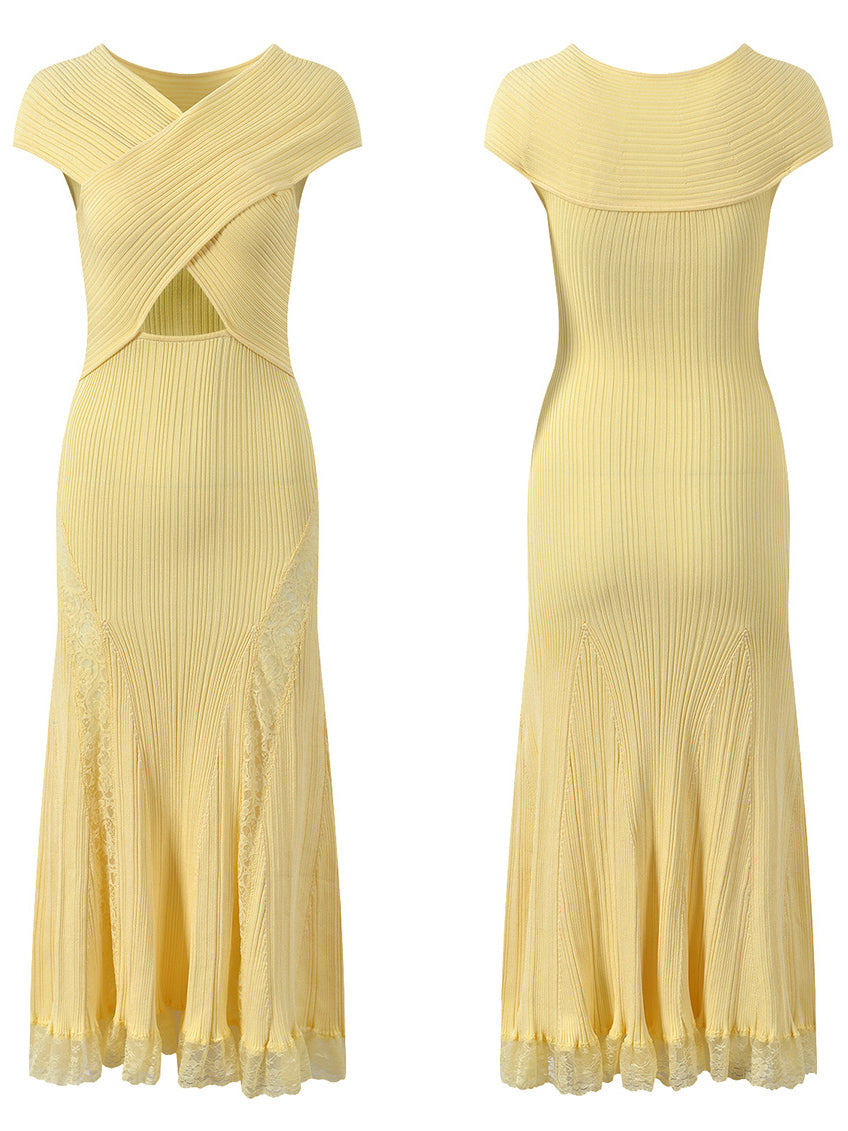 Solid Patchwork Lace Long Dress
