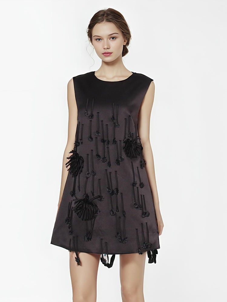 Experience the art of fashion with our Temperament Spliced Appliques Dress. With its unique flower and tassel design, this round-neck, sleeveless dress adds a touch of exclusivity to your wardrobe. Stand out in style with this one-of-a-kind piece that exudes sophistication and elegance.