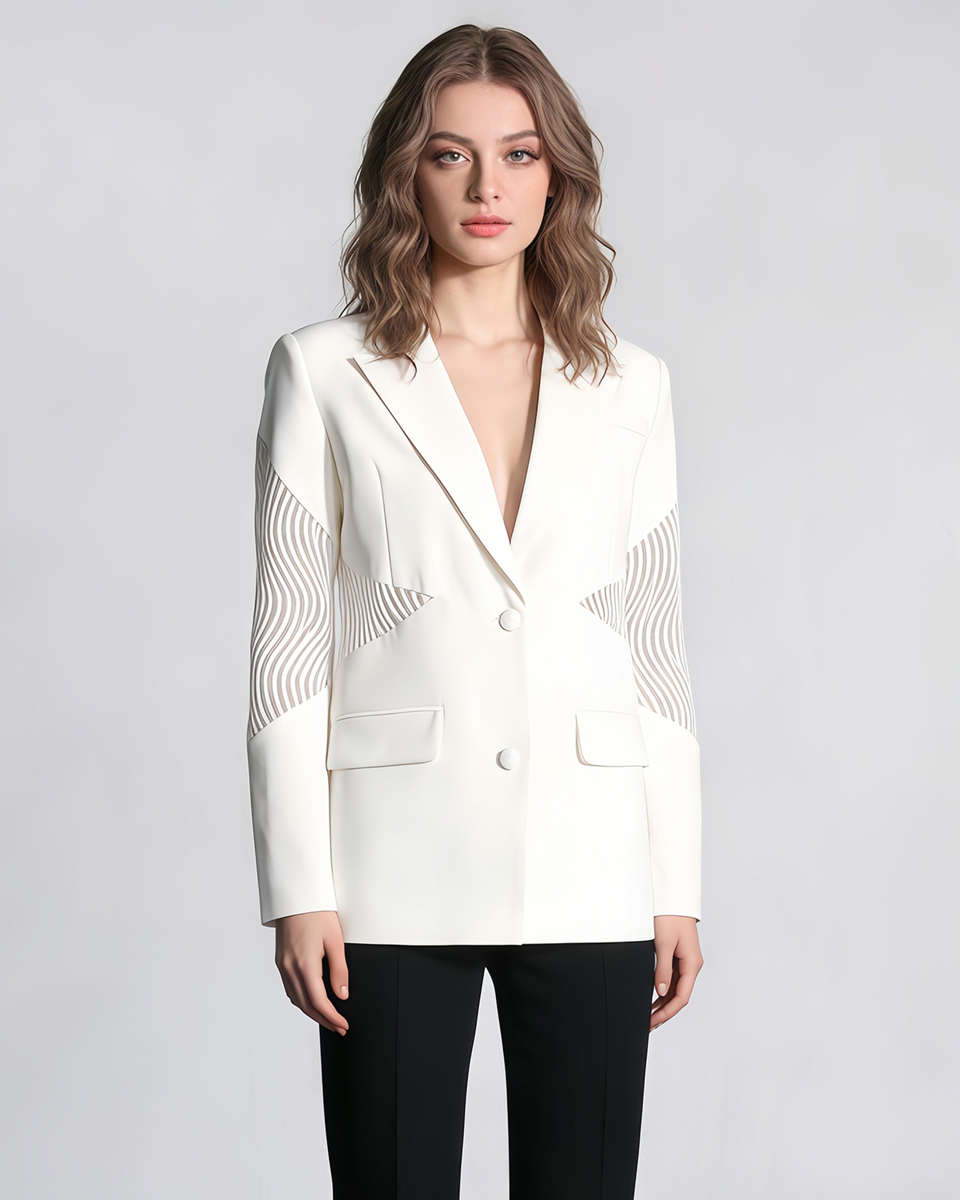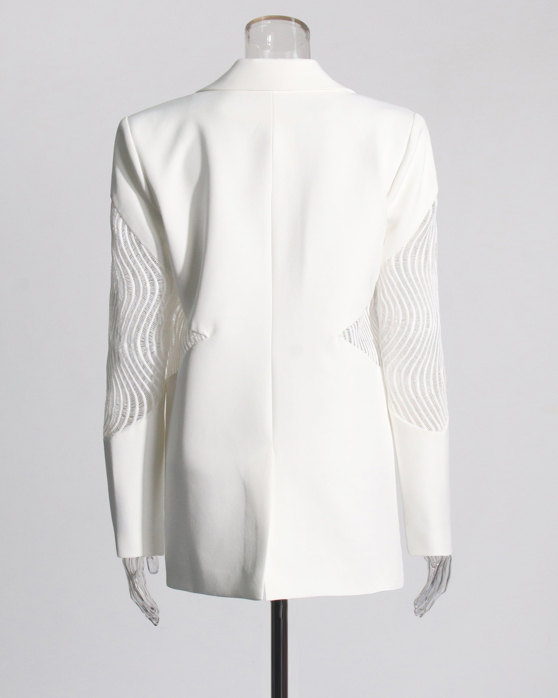 White Blazer with Sheer Mesh Sleeve Panels