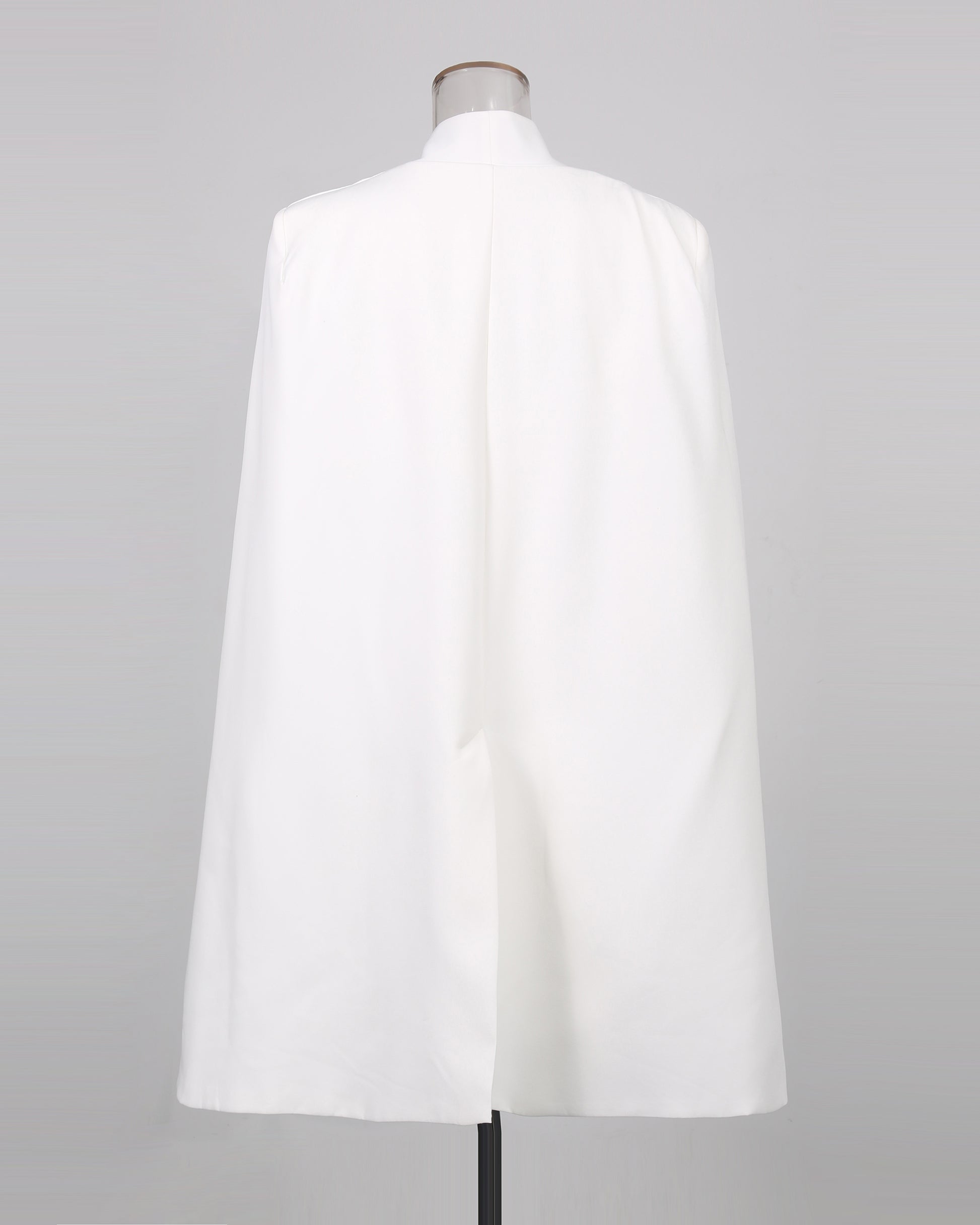 White Cape Sleeve Blazer Jacket with Crystal Button