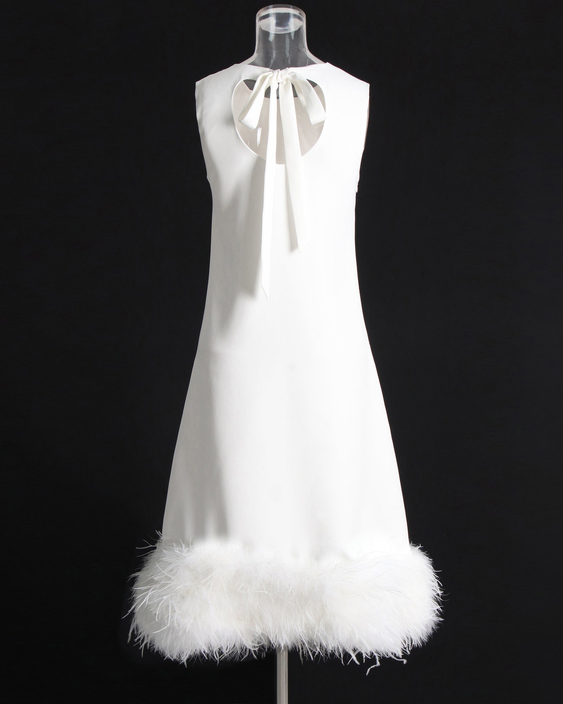 White Feather-Trim Midi Dress