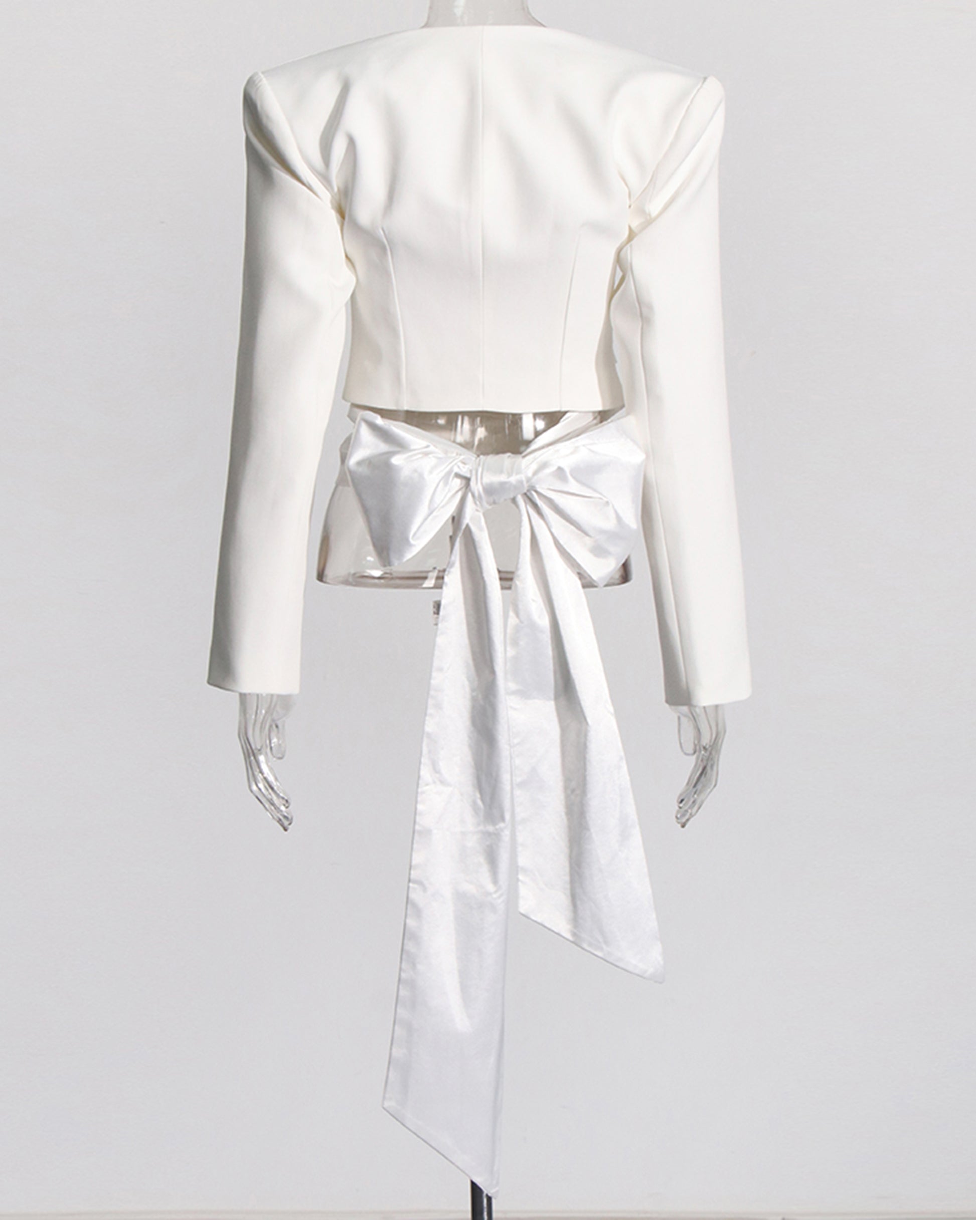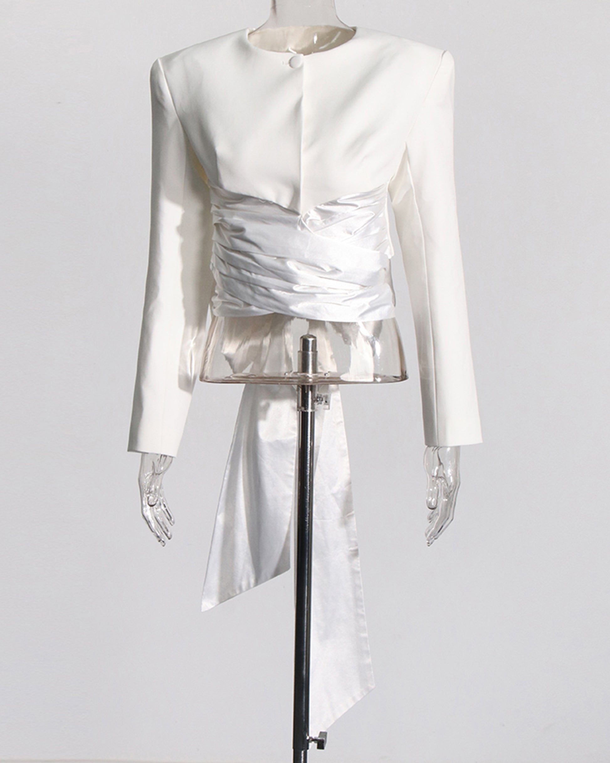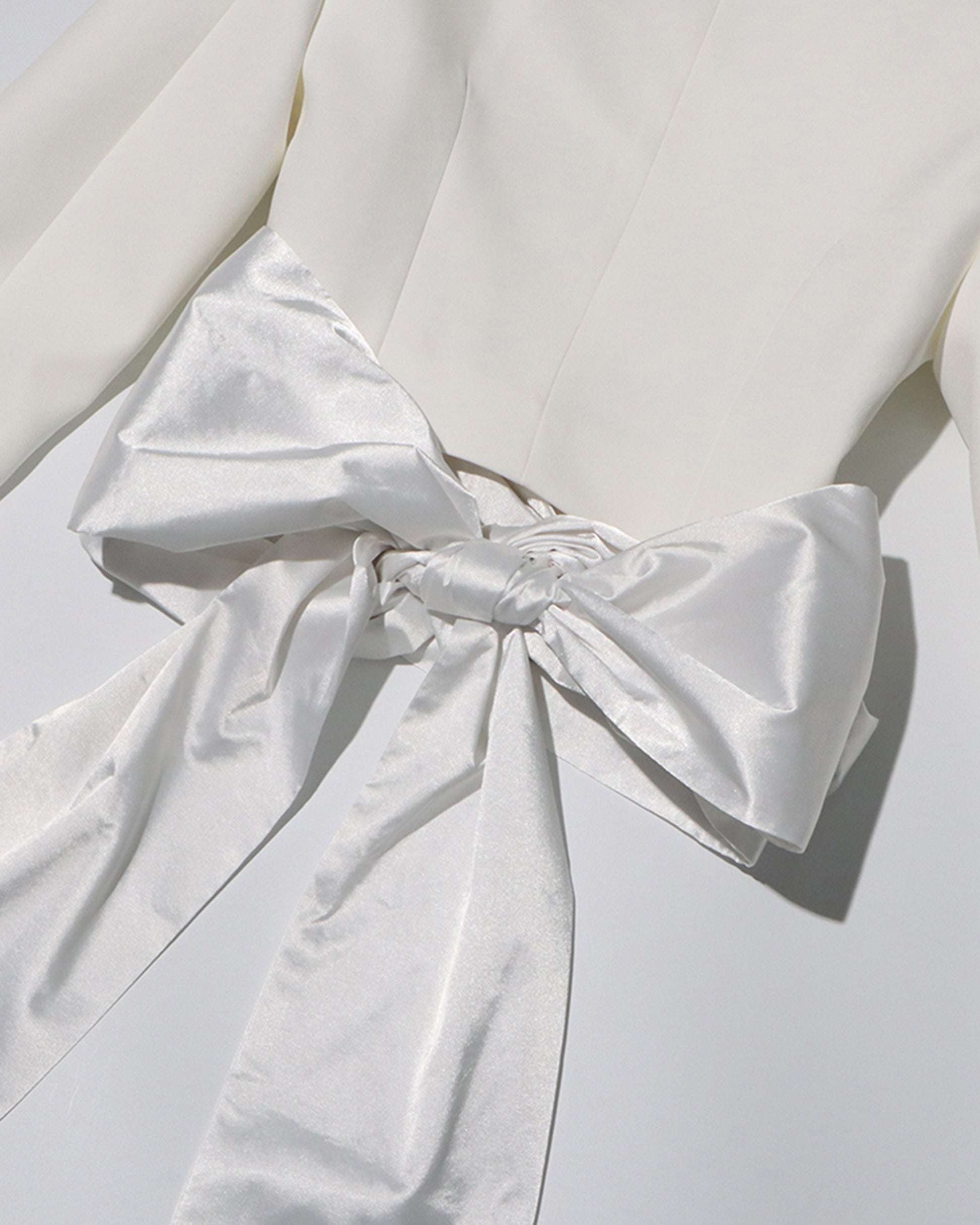 - Elegant, statement silhouette, blending structured fabric and feminine accents.