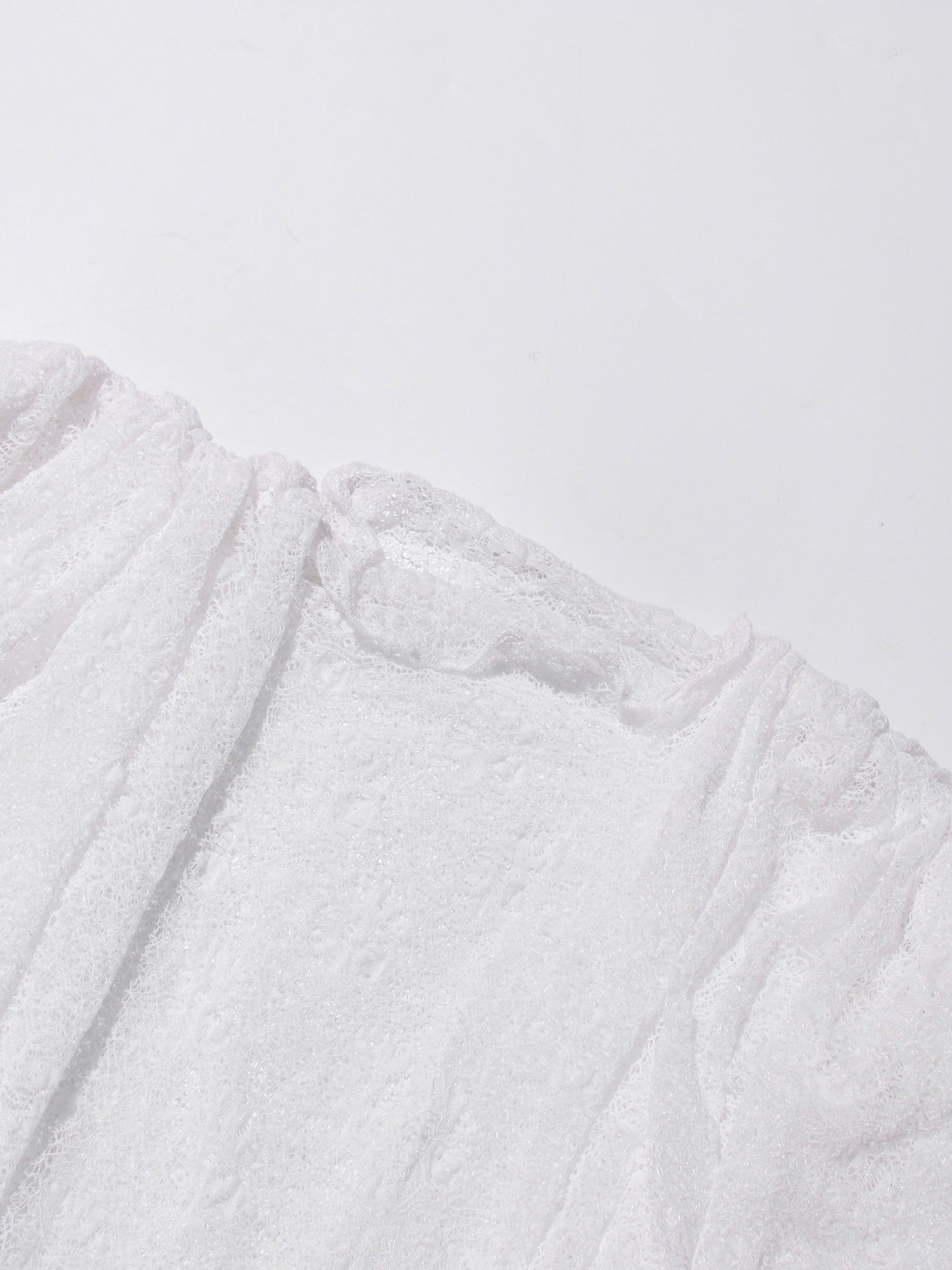 White Lace Ruffled Mini Dress with Puff Sleeves