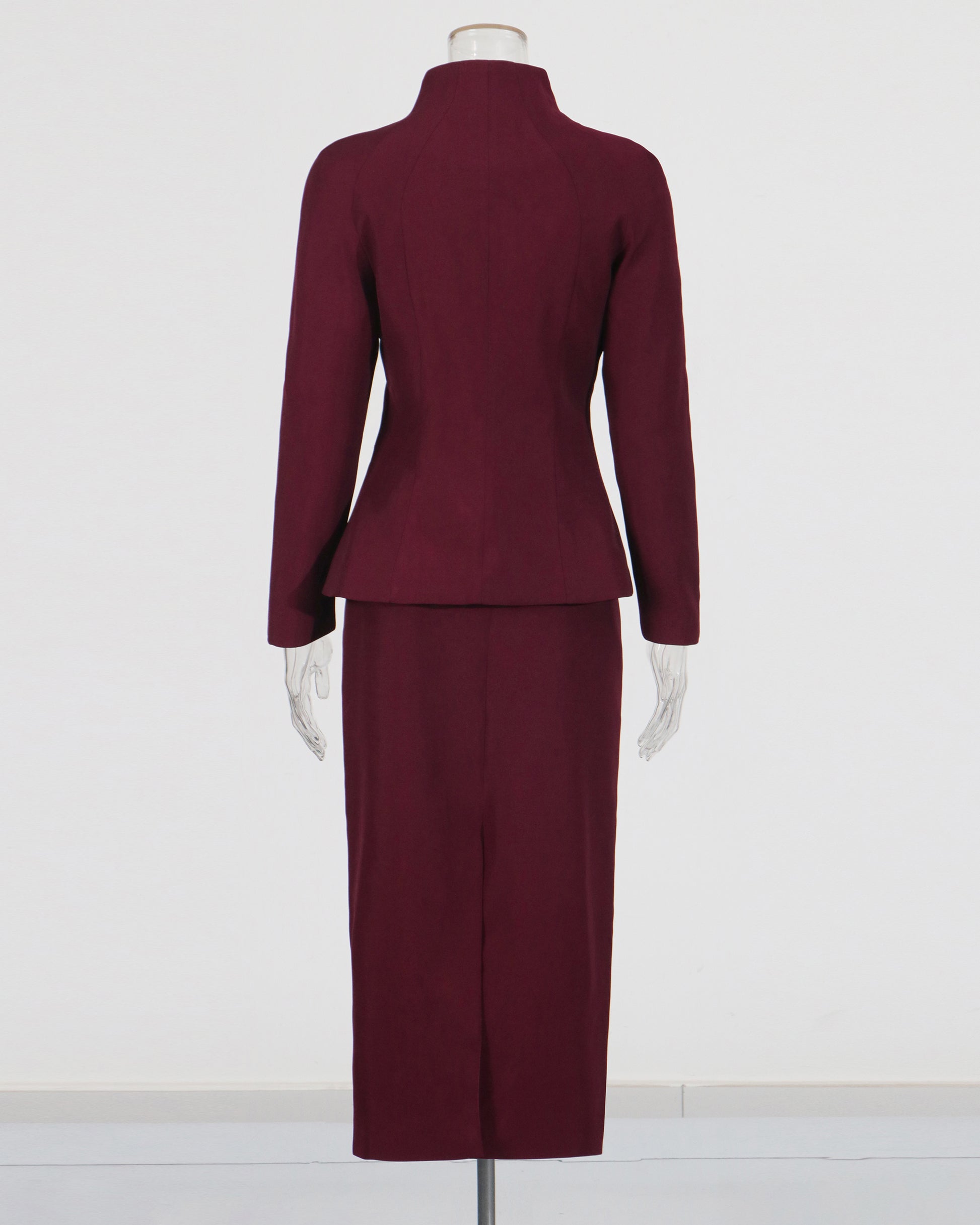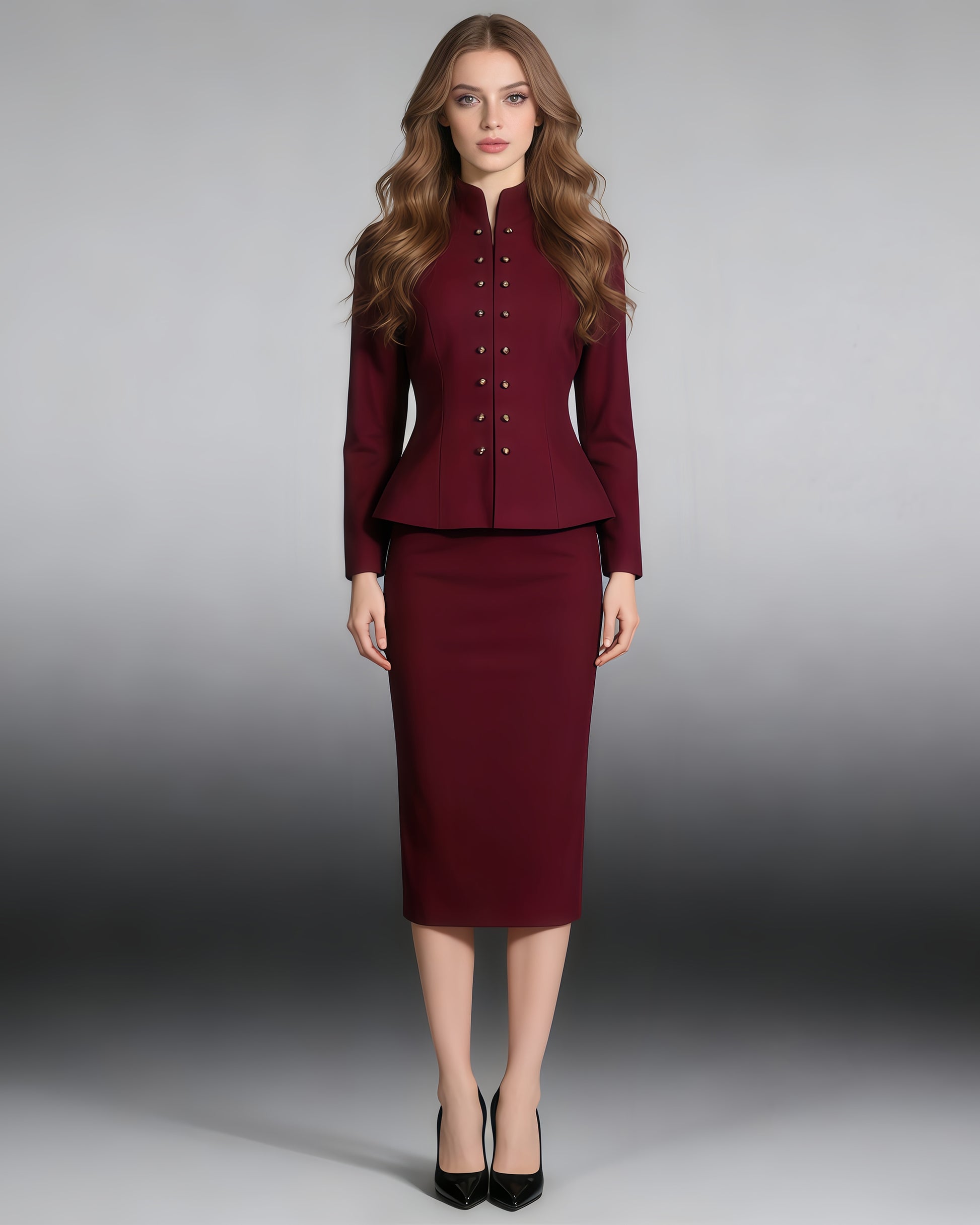 Wine Red Peplum Blazer & Pencil Skirt Set