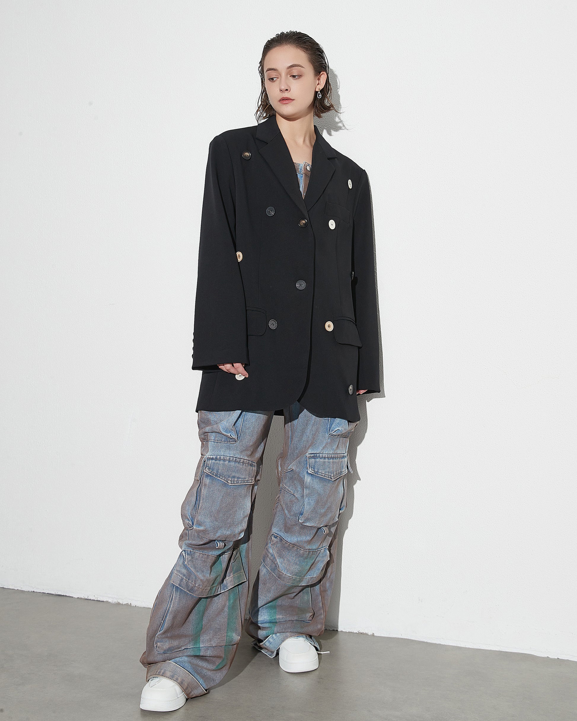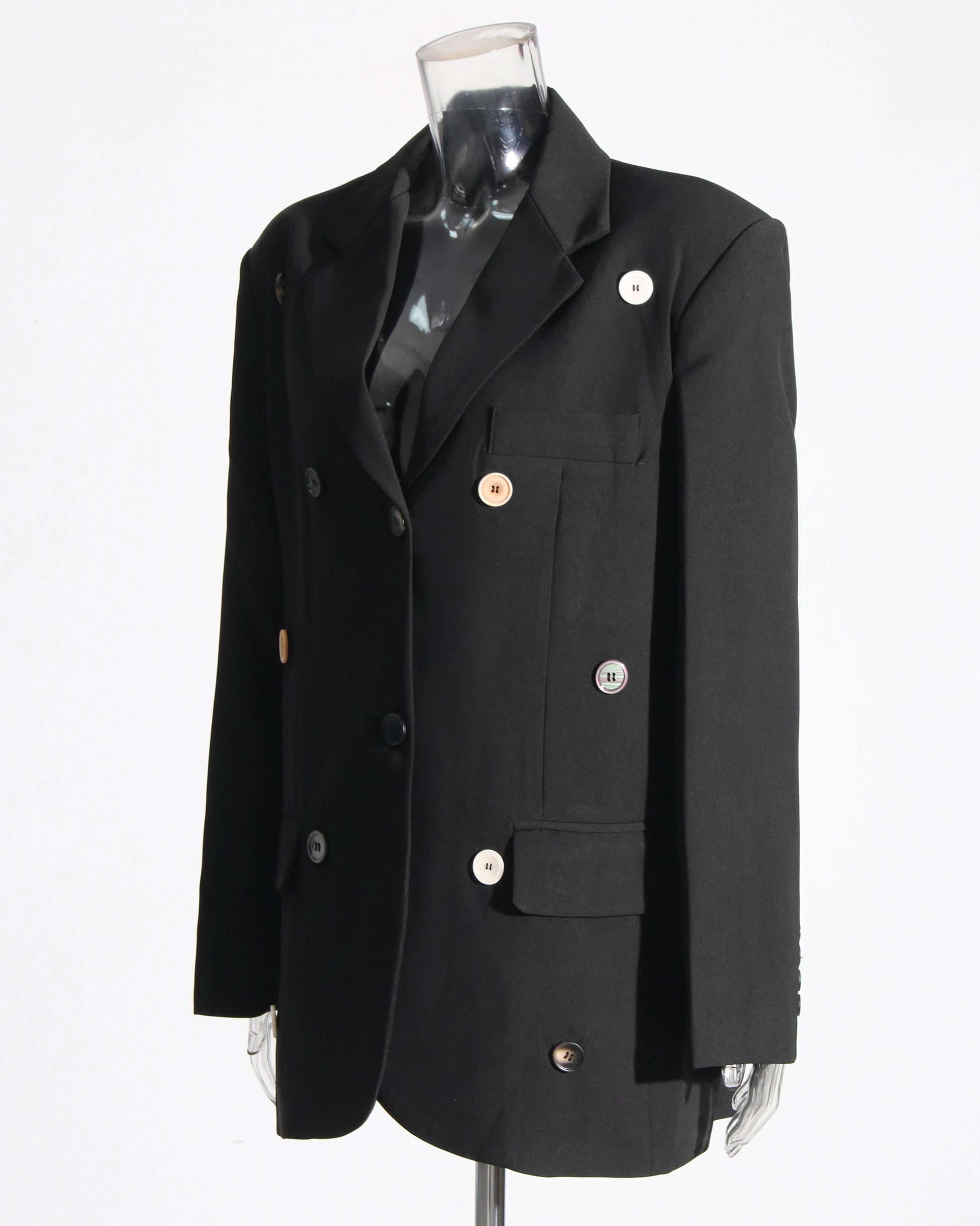 Black Blazer with Multi-Color Button Accents