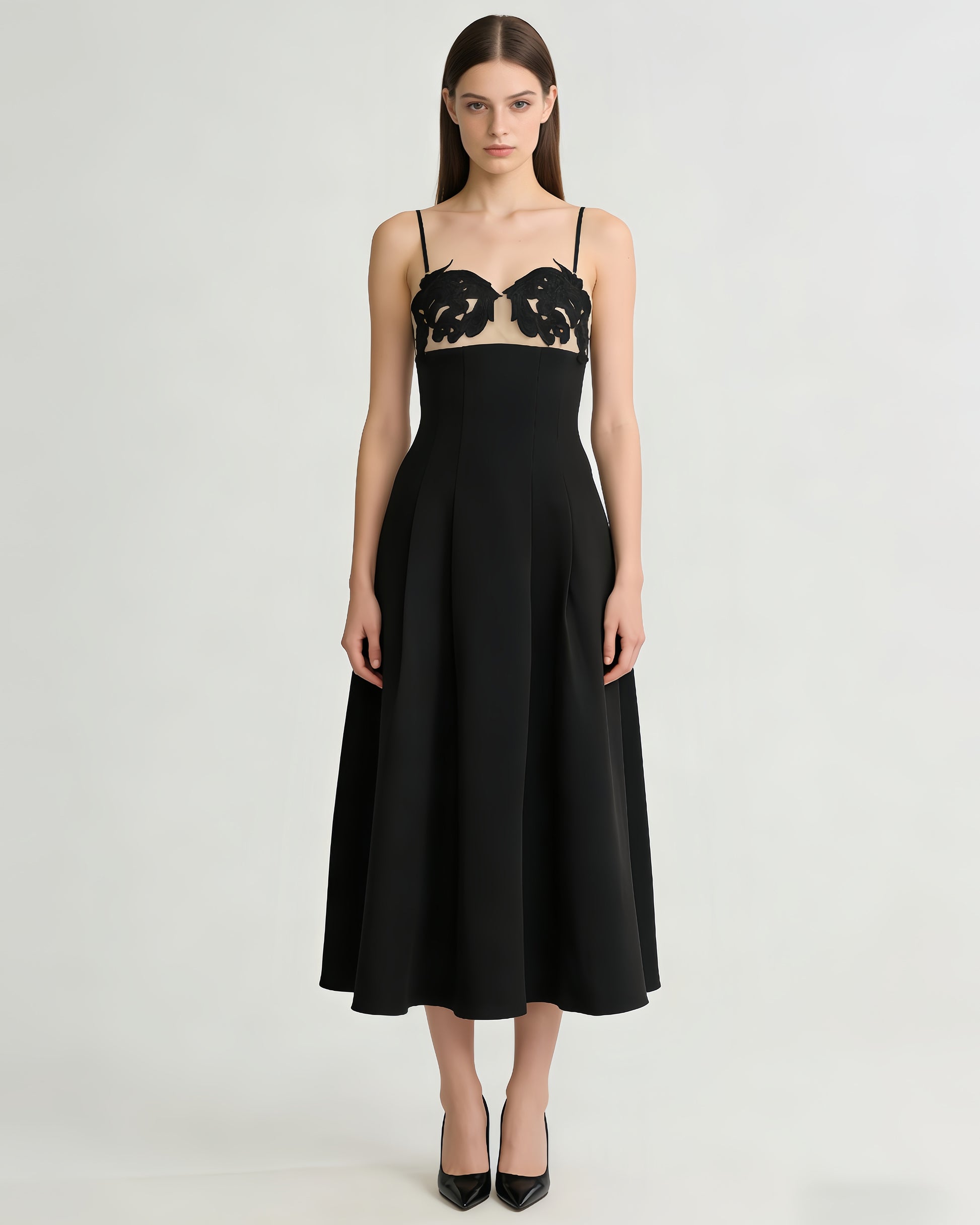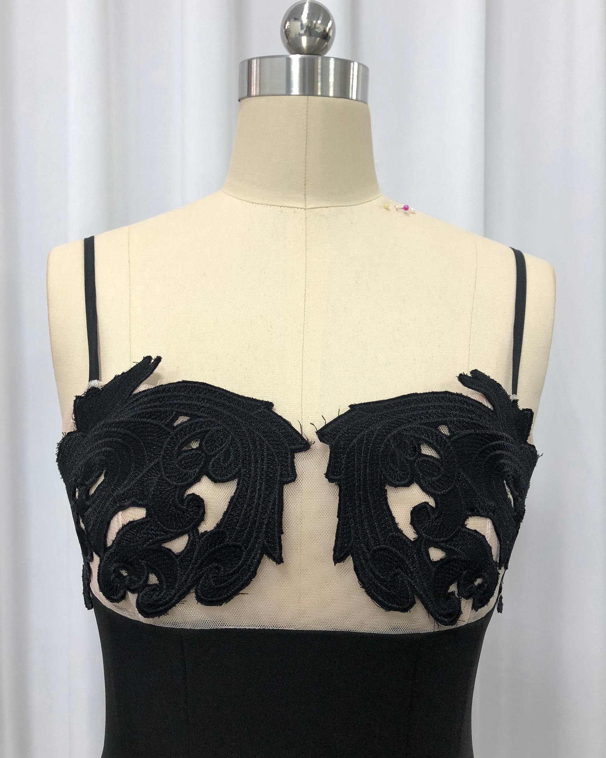 - Sophisticated, feminine silhouette with delicate lace appliqué and a sheer upper panel, designed for an elegant, alluring look.