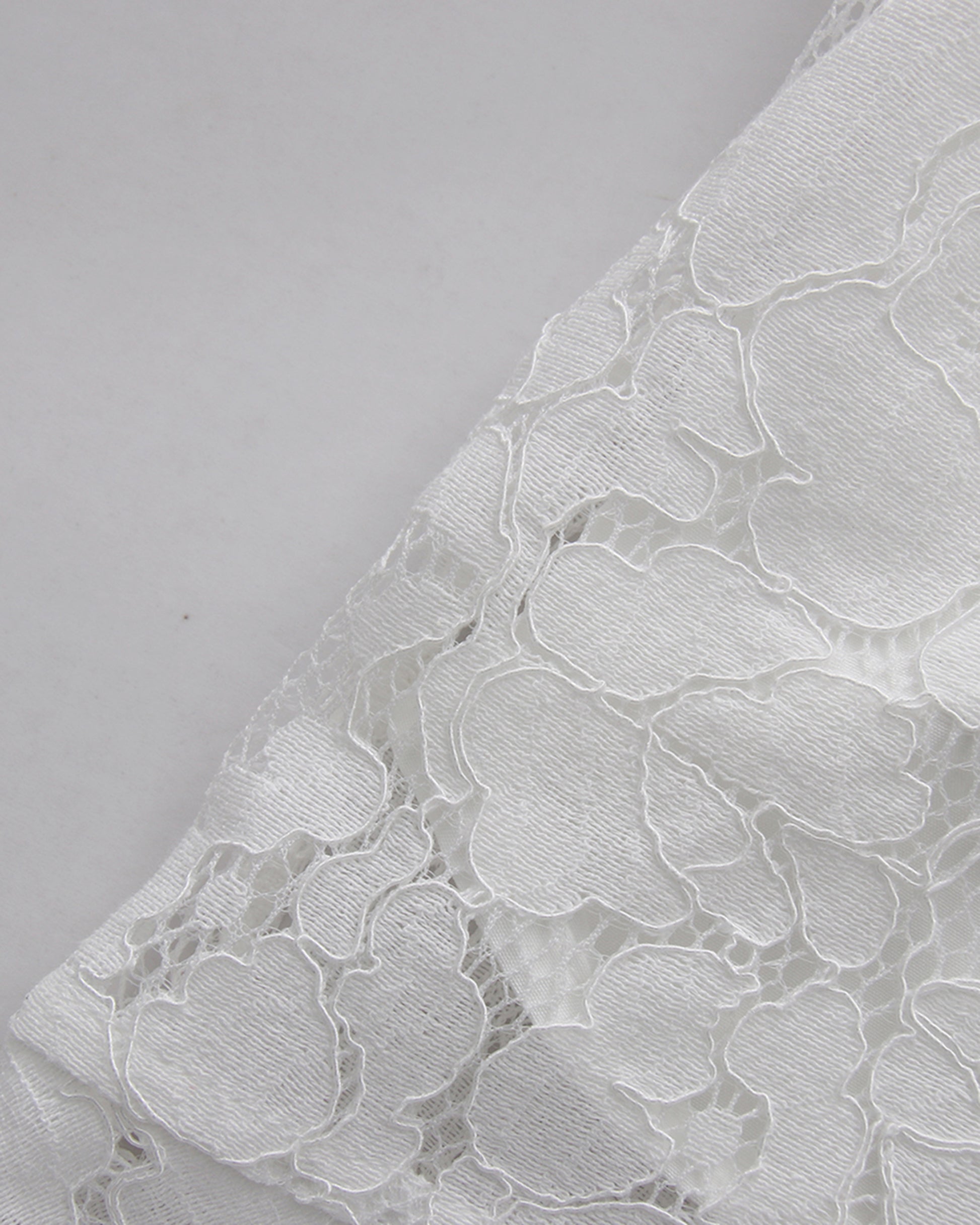 - Timeless, feminine silhouette with a pure white hue and intricate lacework, designed for a gentle, elegant look.