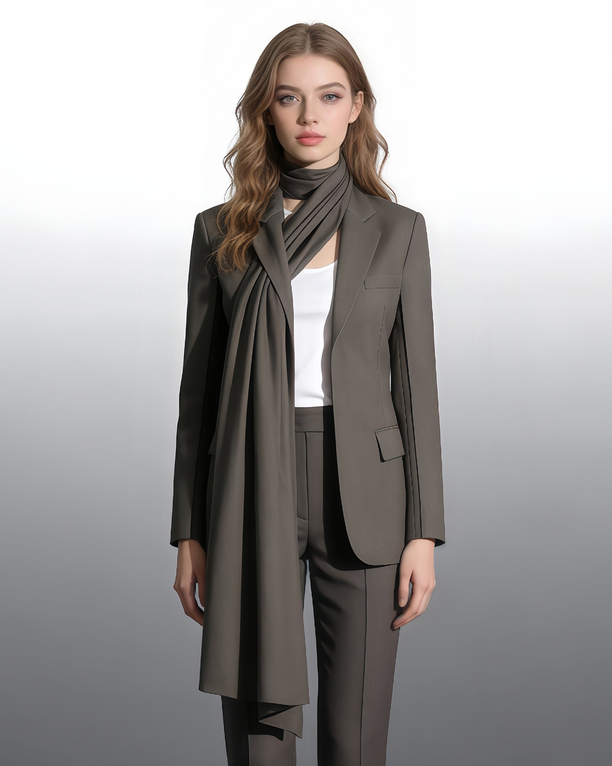 - Elegant, dramatic silhouette, blending classic style and modern flair.