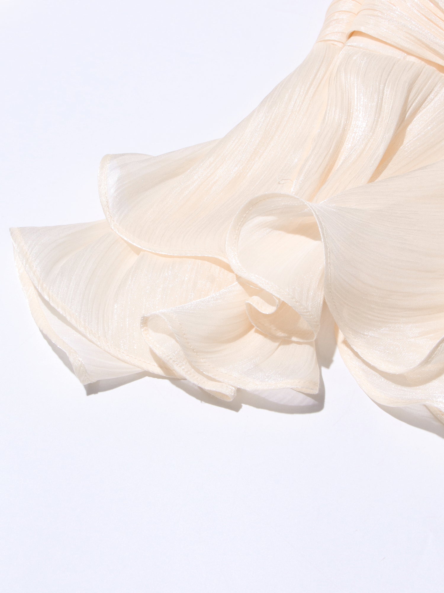 - Soft apricot fabric adding a touch of warmth and elegance.