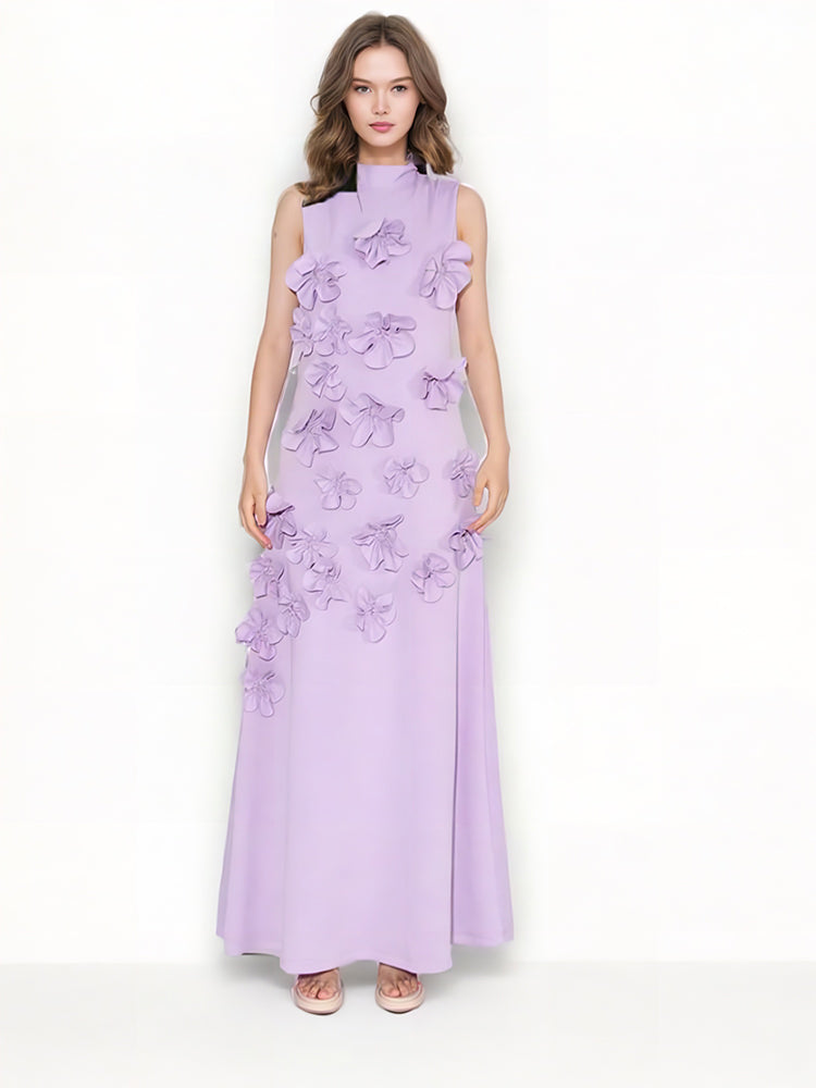 Indulge in luxury with our Elegant Spliced Appliques Slim Dresses. The exquisite handmade flower detailing, high neckline, and sleeveless design exude sophistication and elegance. The long length adds a touch of glamour to complete the look. Elevate your style with this dress that is sure to turn heads.