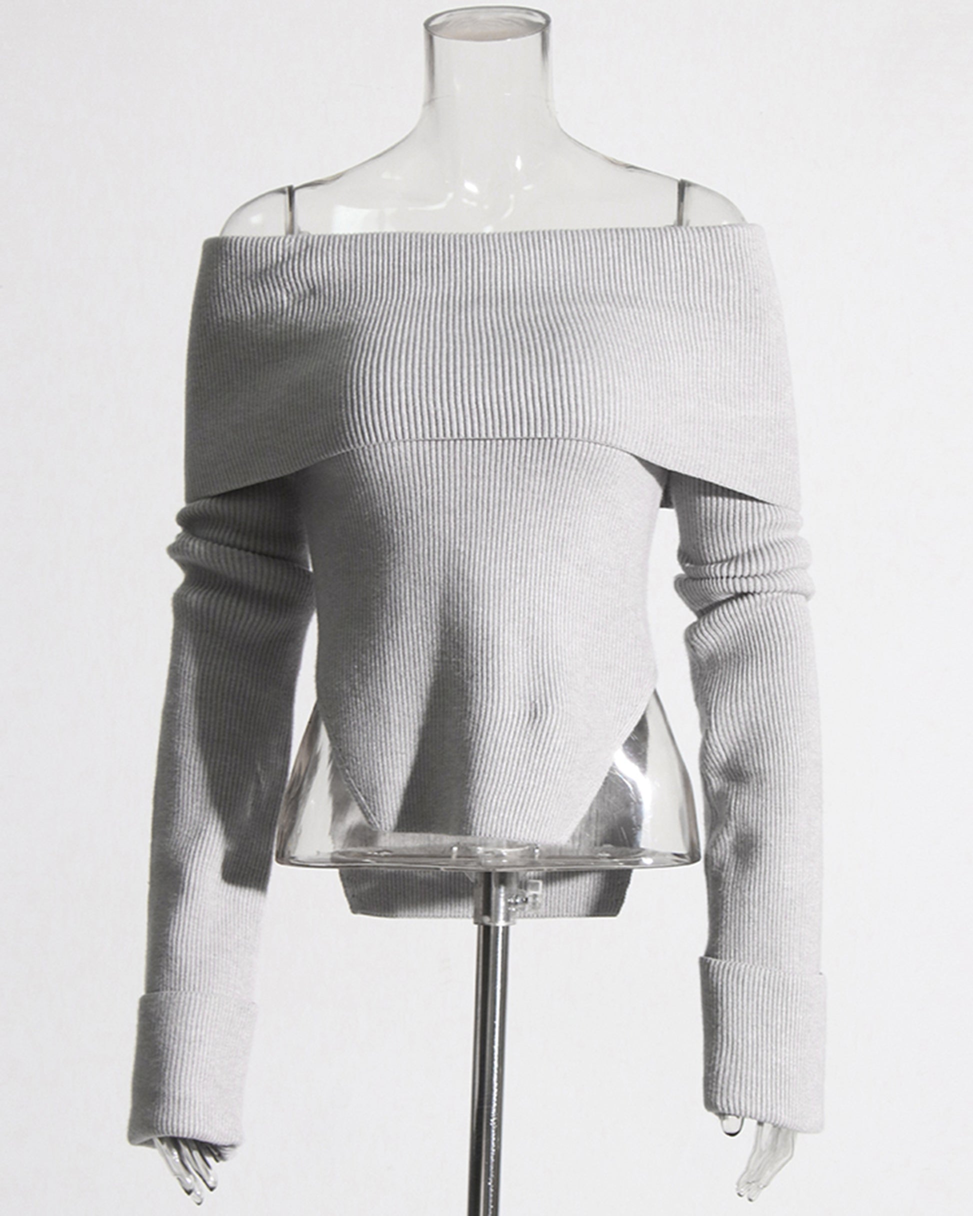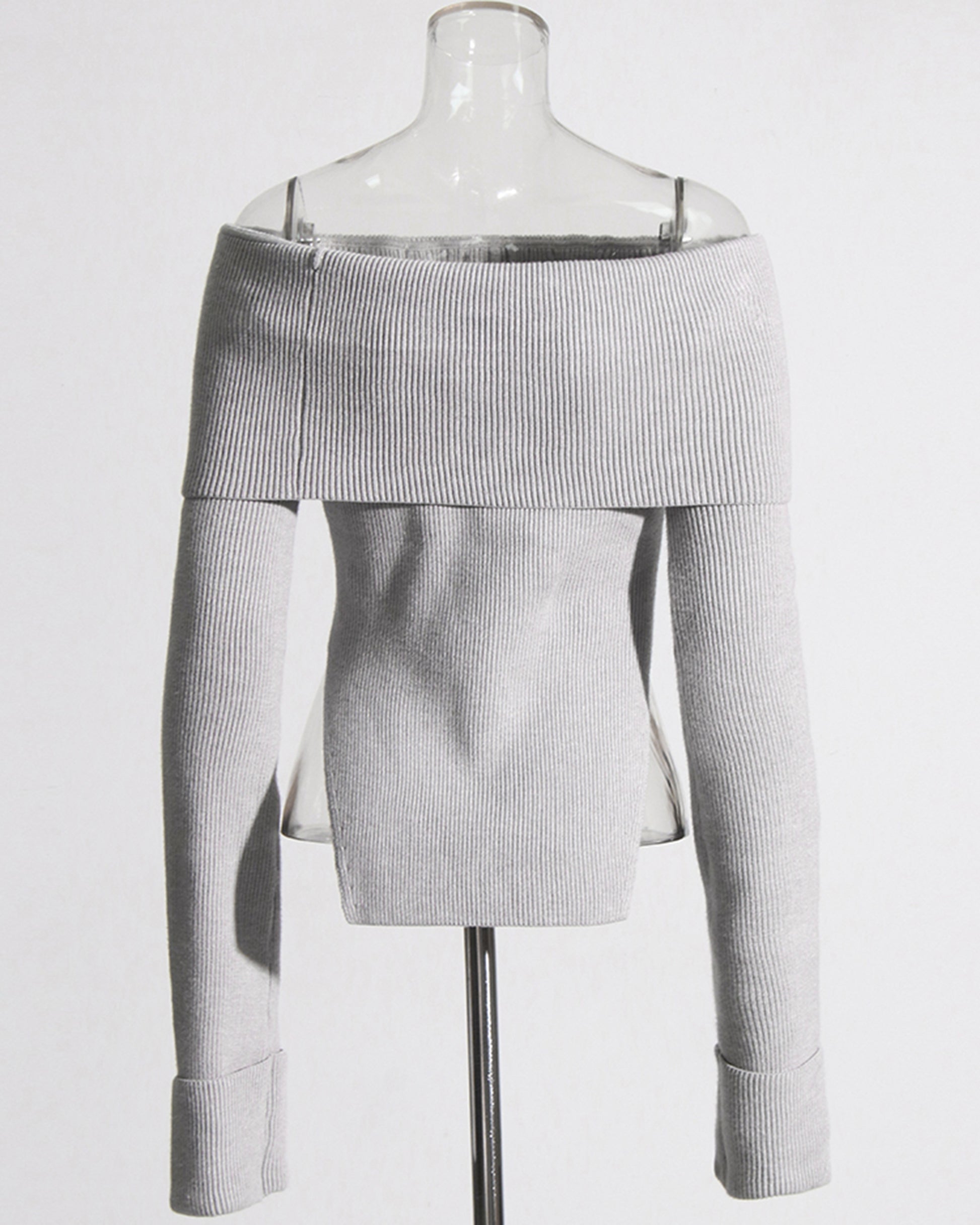 Gray Off-the-Shoulder Ribbed Knit Top
