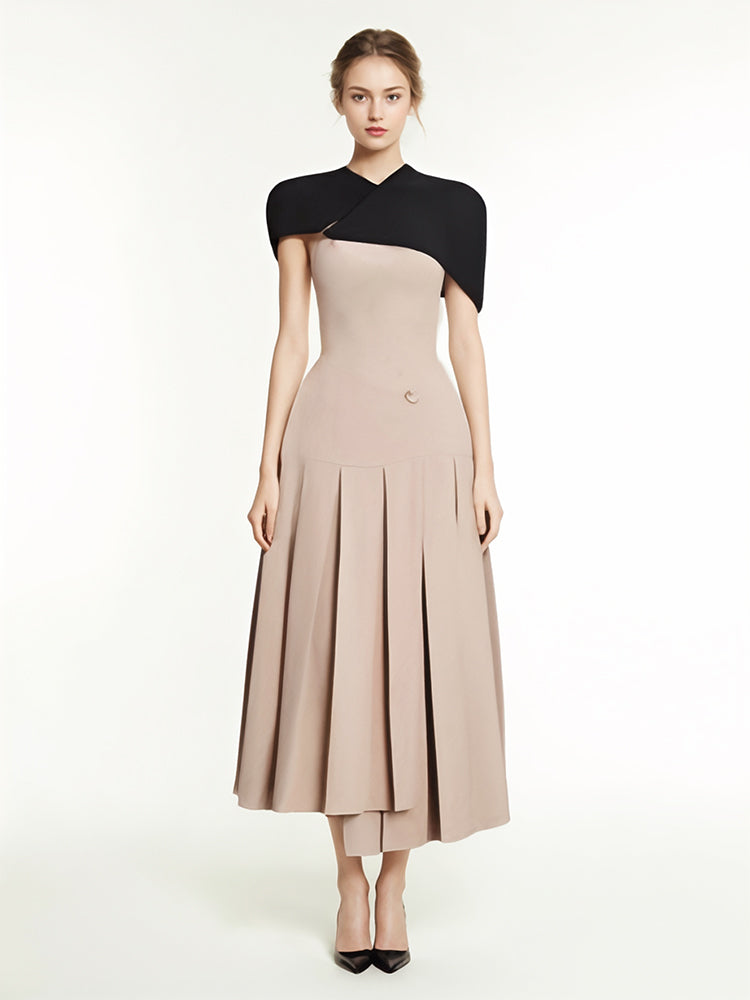 Add a touch of sophistication with our Hit Color Detachable Dresses. This dress features delicate pleats, a detachable shoulder shawl, a cinched waist, and a charming midi length. Perfect for a day at the art gallery or a night out at the opera. Elevate your wardrobe with this elegant piece.