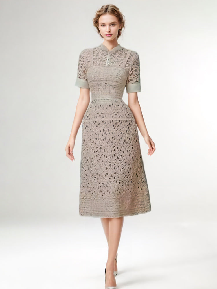 Indulge in the luxurious and exclusive Hollow Out Temperament Dresses. Crafted with delicate, water-soluble lace, these dresses feature intricate floral patterns and a stylish round neckline. The short sleeves add a touch of sophistication to the mid-length design, making it the perfect statement piece for your wardrobe. Elevate your style and exude elegance with these exquisite dresses.