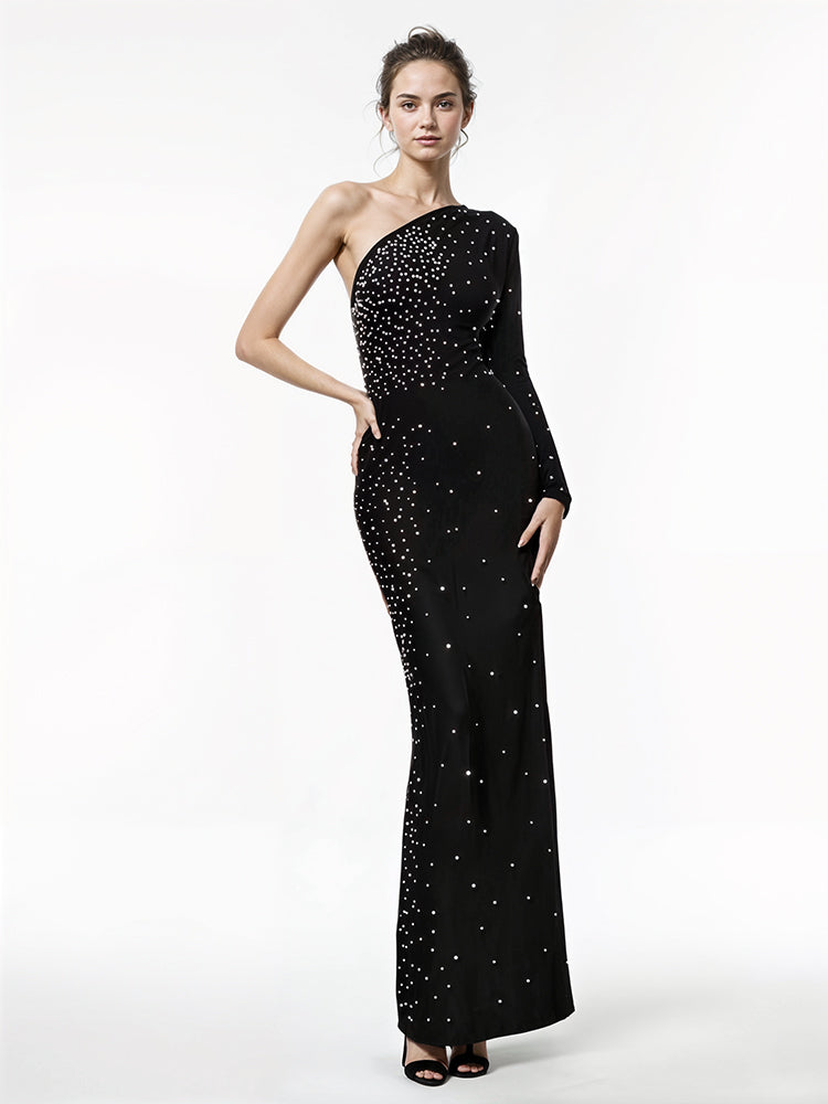 Embrace your bold and alluring side with our Off One Shoulder Slimming Dresses. The trendy off-shoulder design, slimming silhouette, and sparkling rhinestone accents make this dress a must-have for any fashion-forward woman. Show off your figure and turn heads in this elegant and exclusive piece.