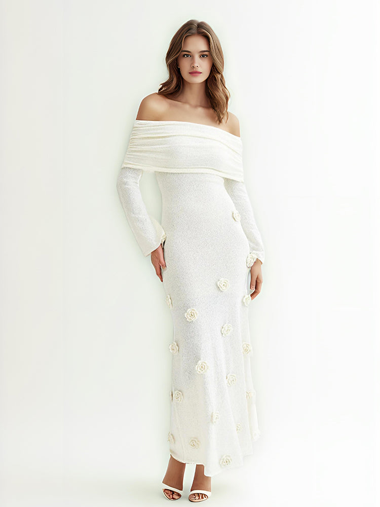 Enhance your allure with our Off Shoulder Sleeve Temperament Slimming Dress. The tasteful floral design and form-fitting cut accentuate your curves, while the off-shoulder style adds an elegant touch. Made with high-quality, knit fabric for a luxurious feel. Elevate your wardrobe with this exclusive piece.