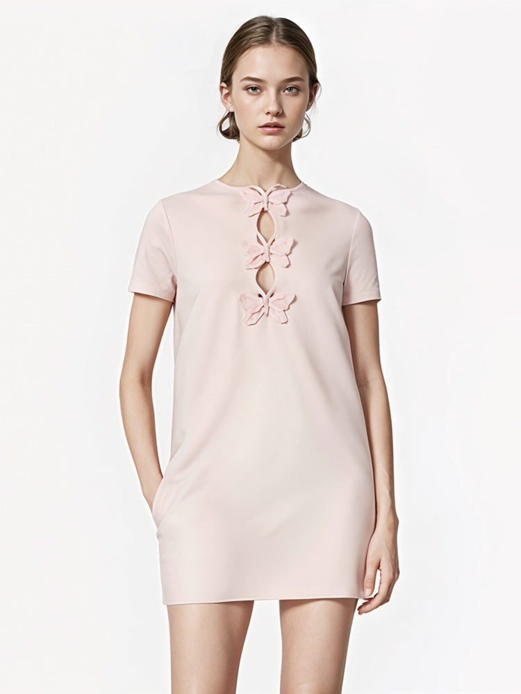 Elevate your style with our Patchwork Butterfly Hollow out Mini Dress. The delicate neckline features intricate butterfly embroidery that adds a touch of whimsy. The short length brings a playful element to this luxurious piece. Perfect for any sophisticated occasion.