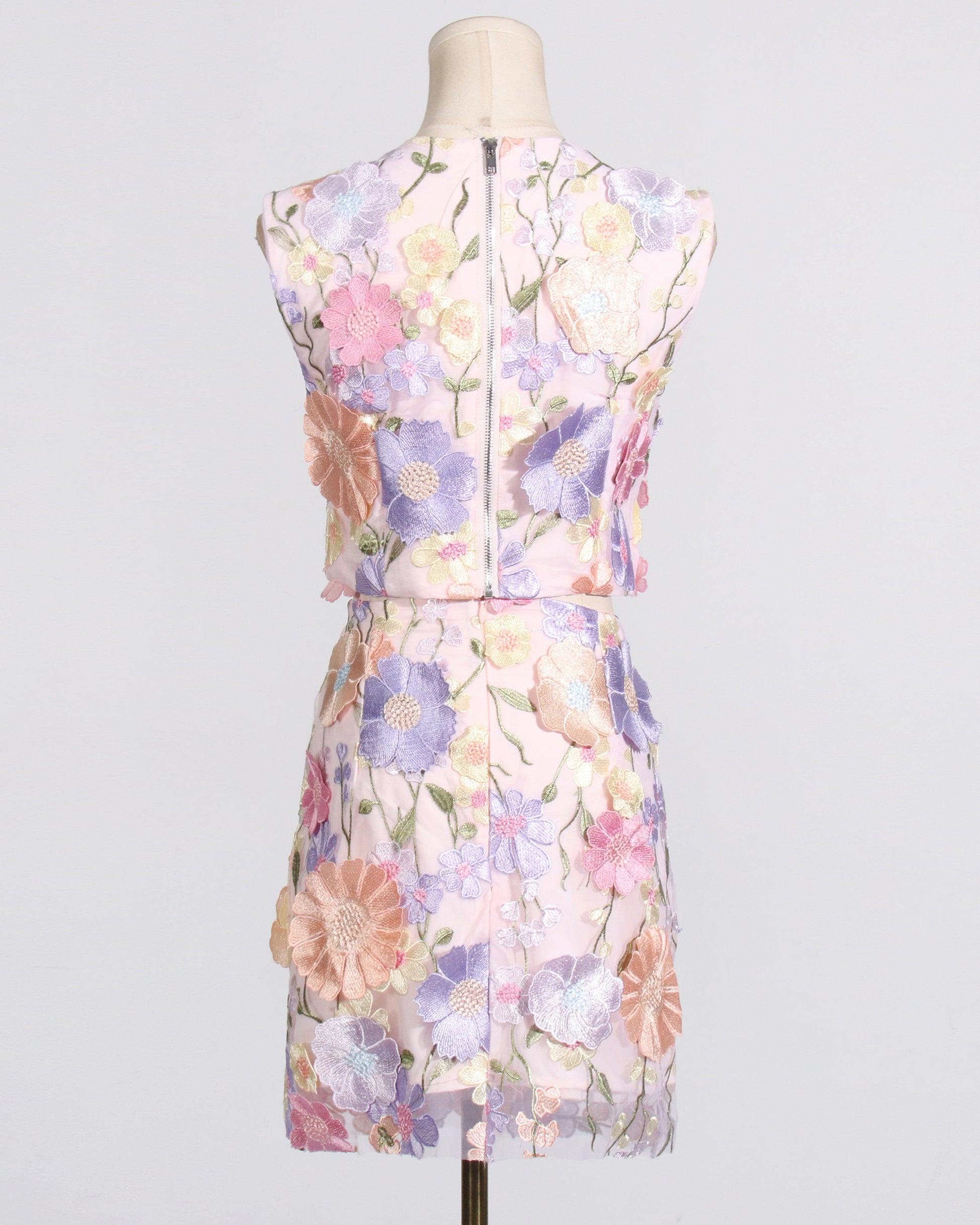 - Feminine, vibrant silhouette, blending sheer tulle and intricate stitching details.