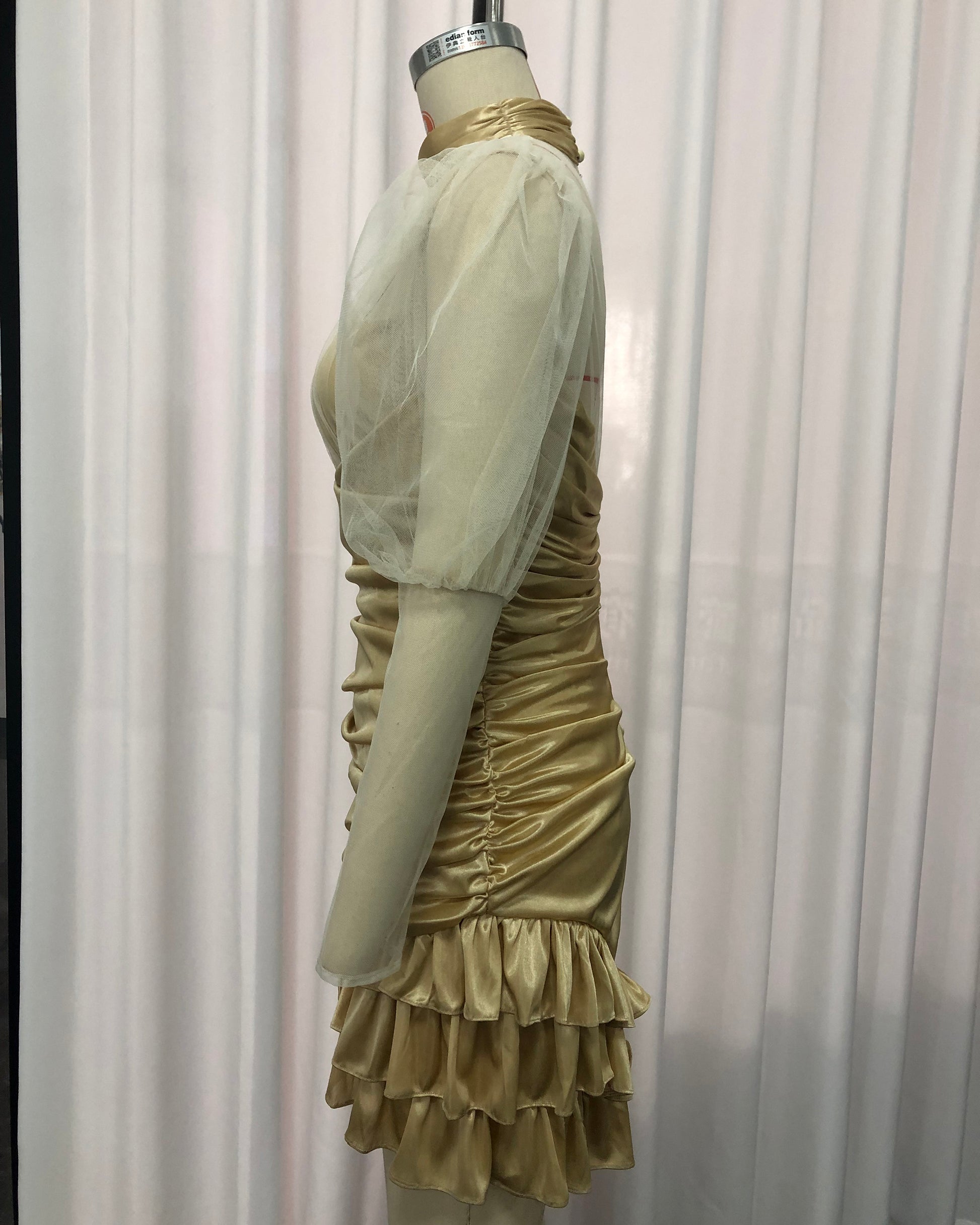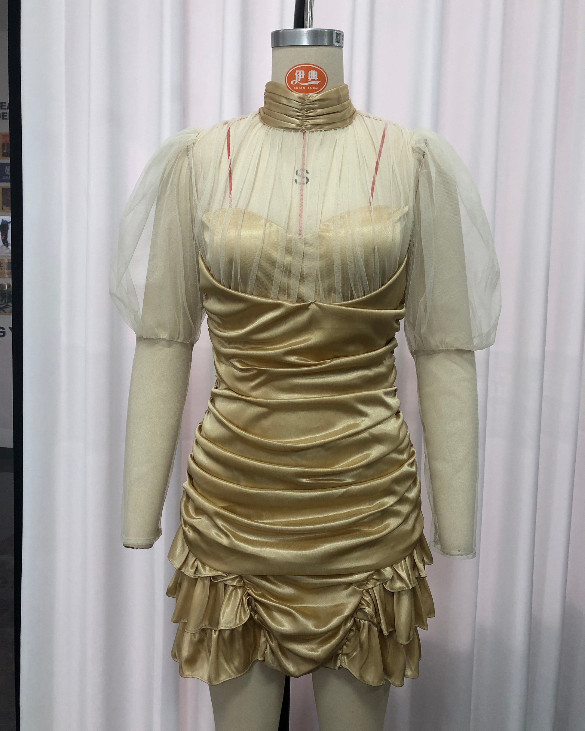 Apricot Tulle Puff Sleeve Satin Mini Dress