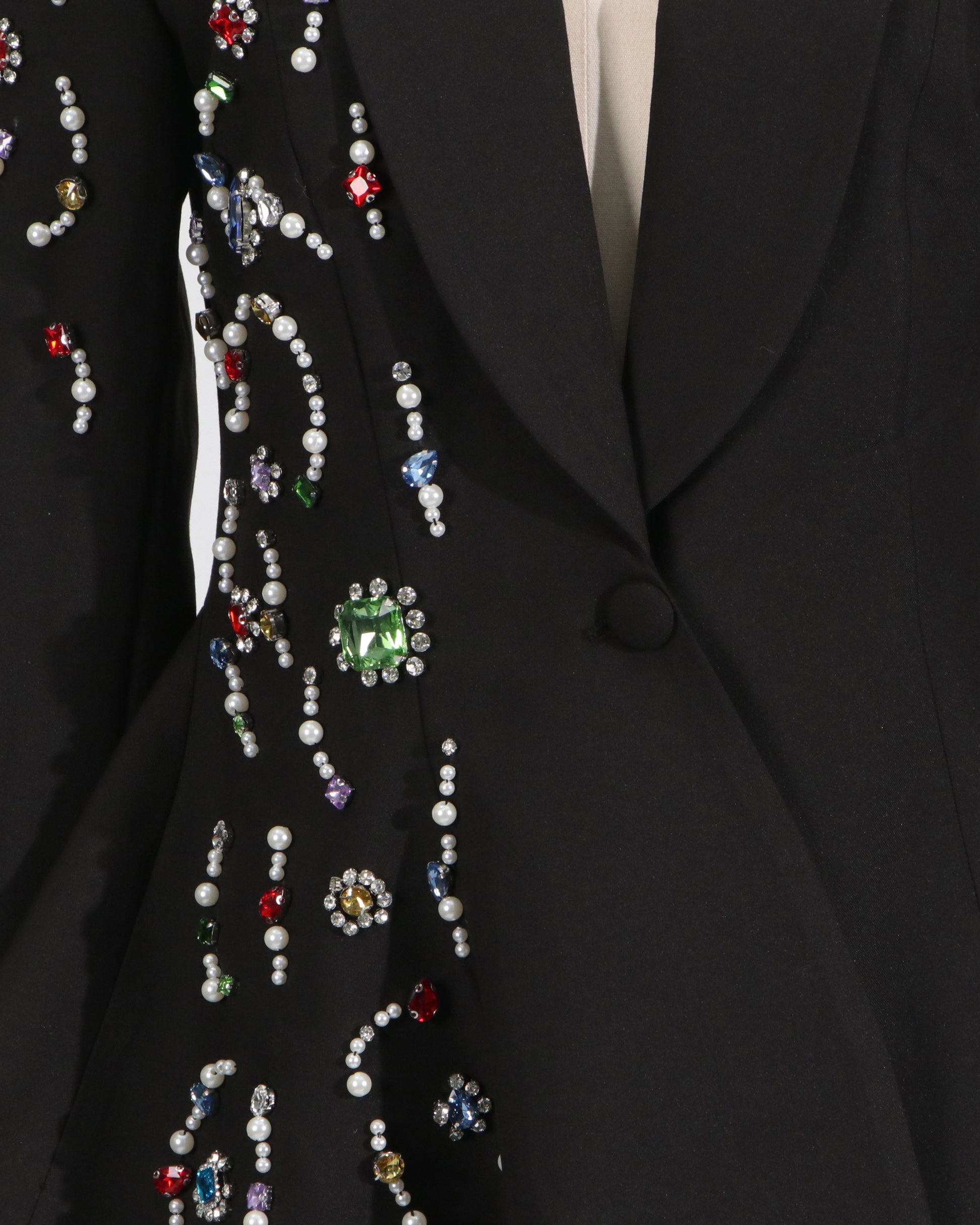 - Feminine, eye-catching silhouette, blending structured fabric with sparkling, hand-applied details.