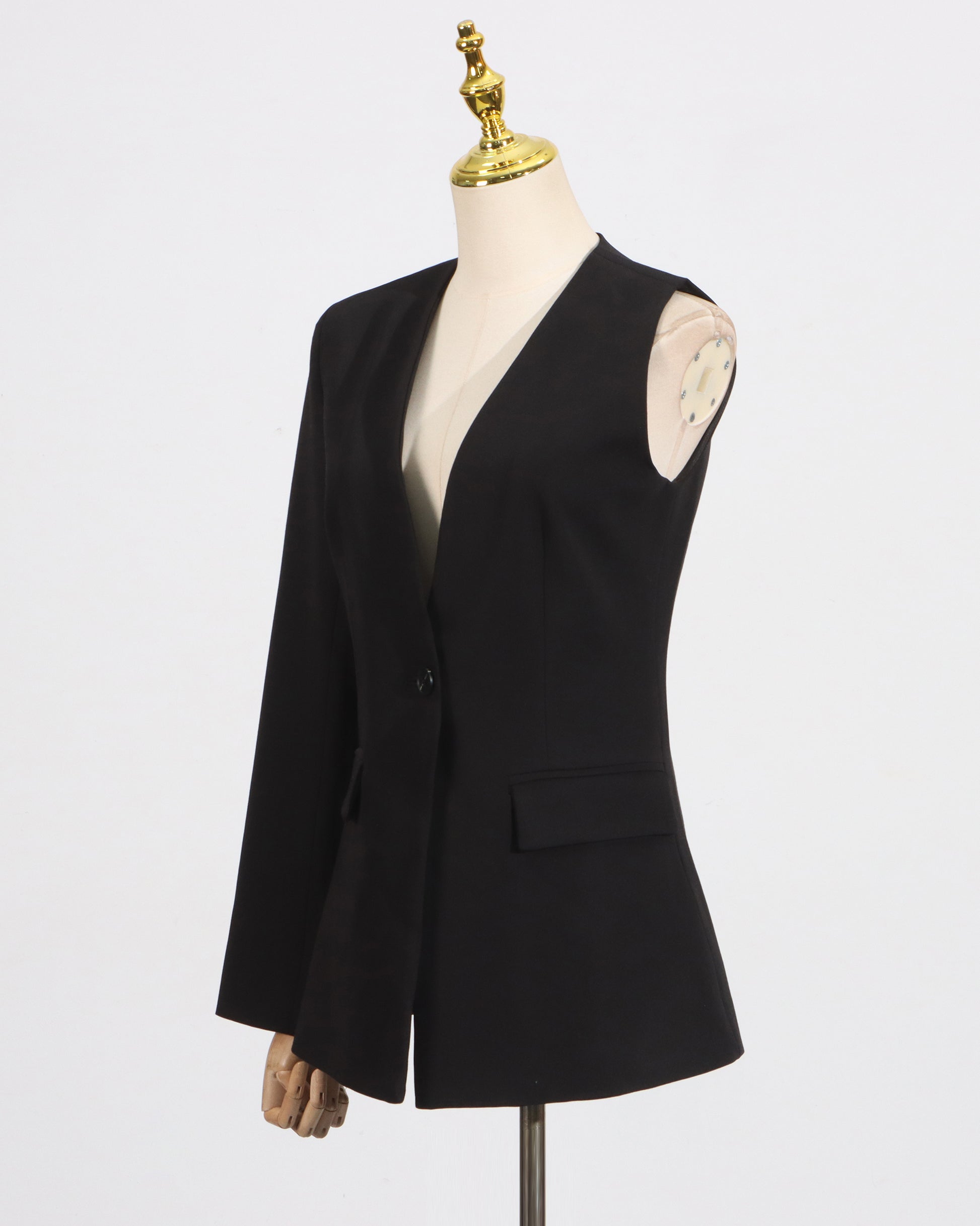 - Blazer: Asymmetrical one-sleeve design, single-breasted button closure, tailored fit.