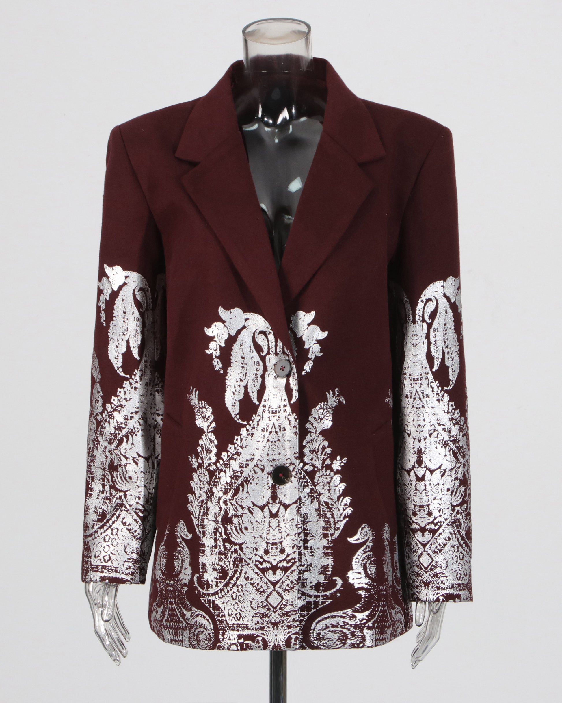 Burgundy & Silver Baroque Print Blazer