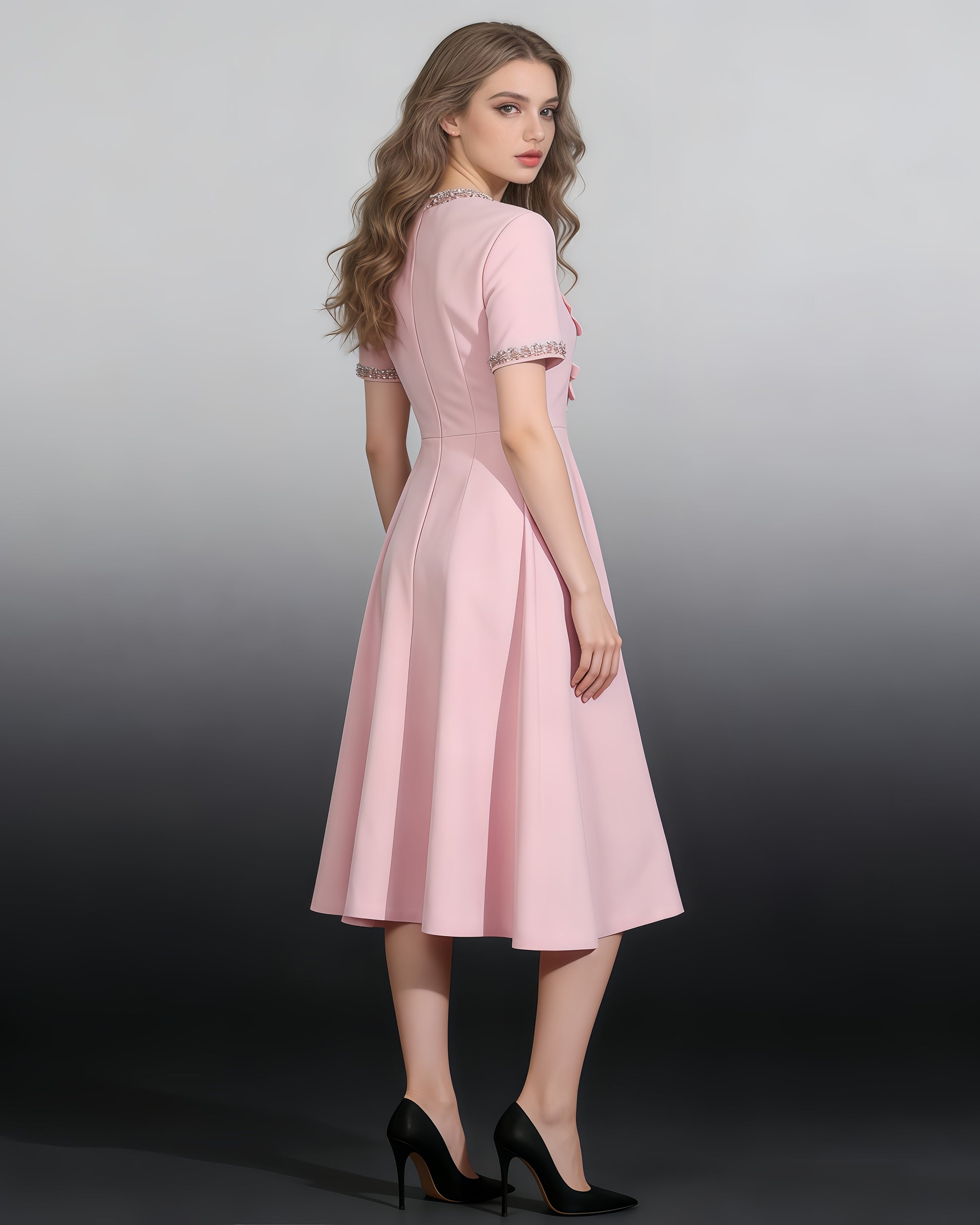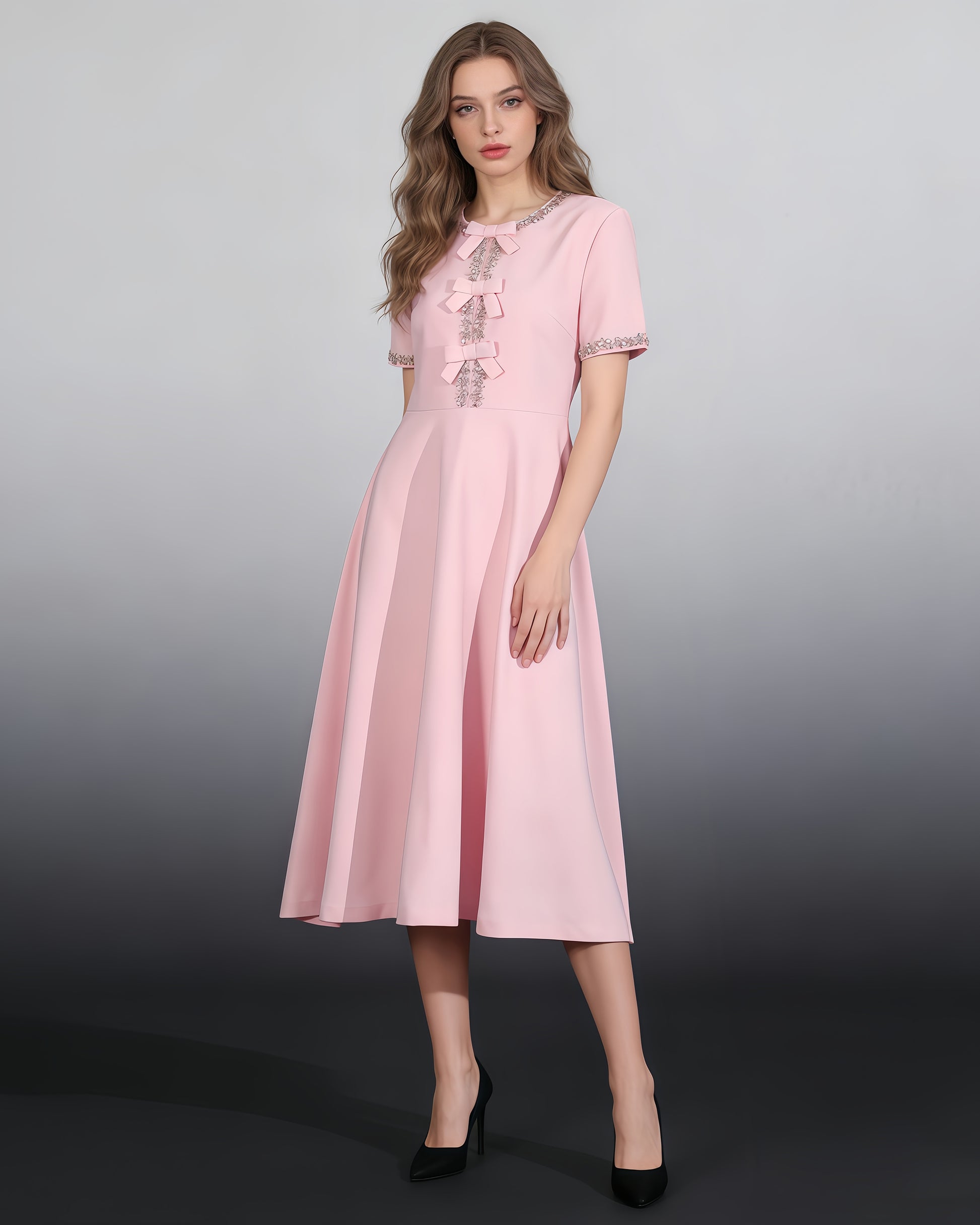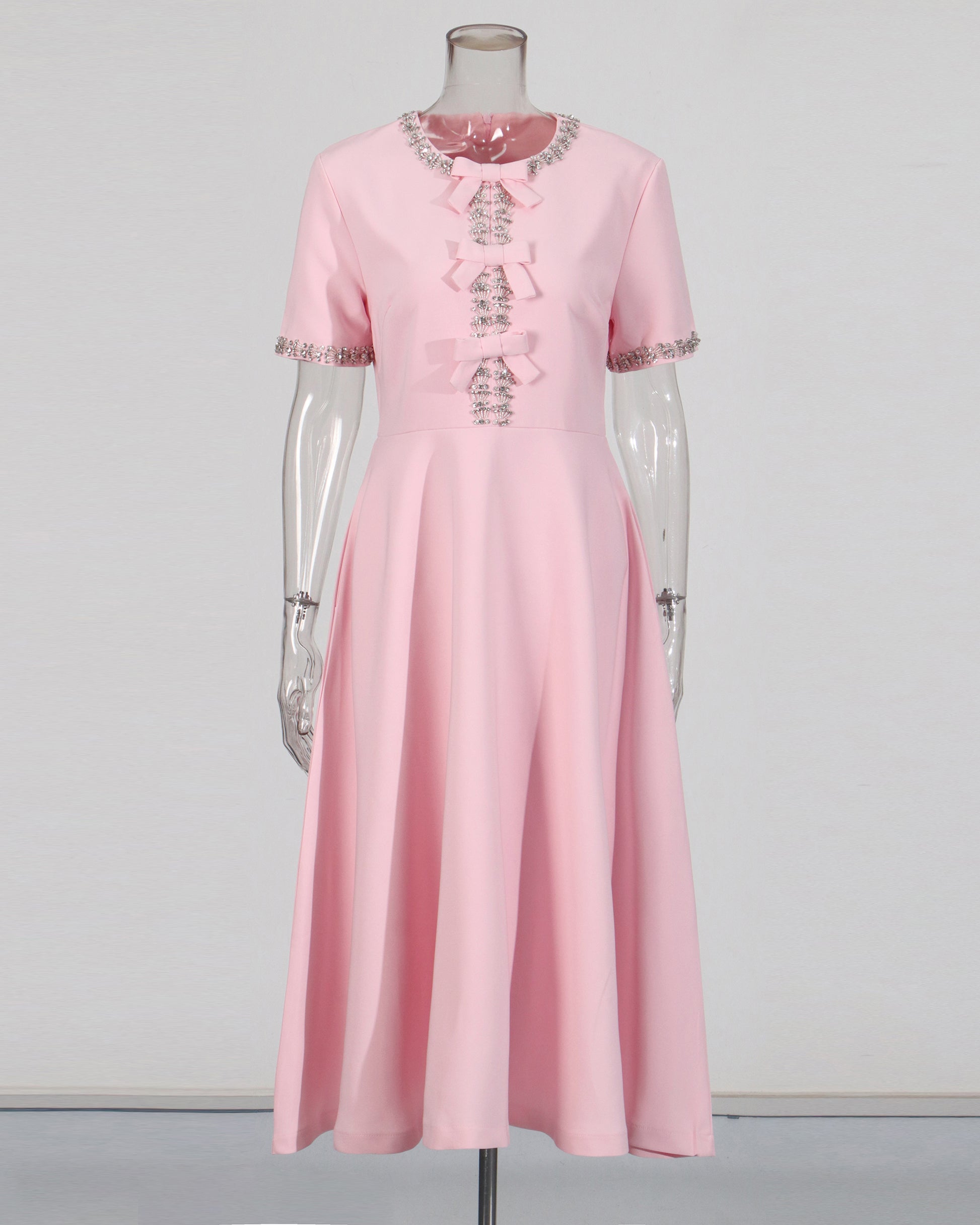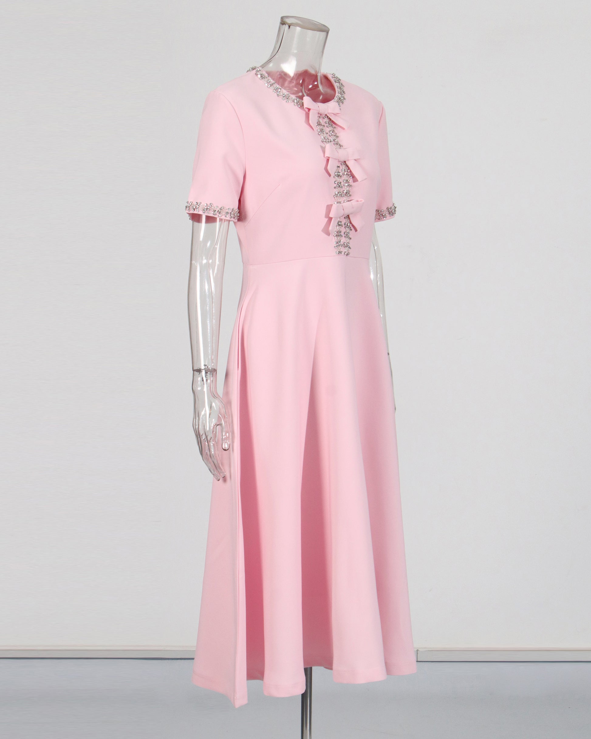 Pink Rhinestone Bow Fitted Dress